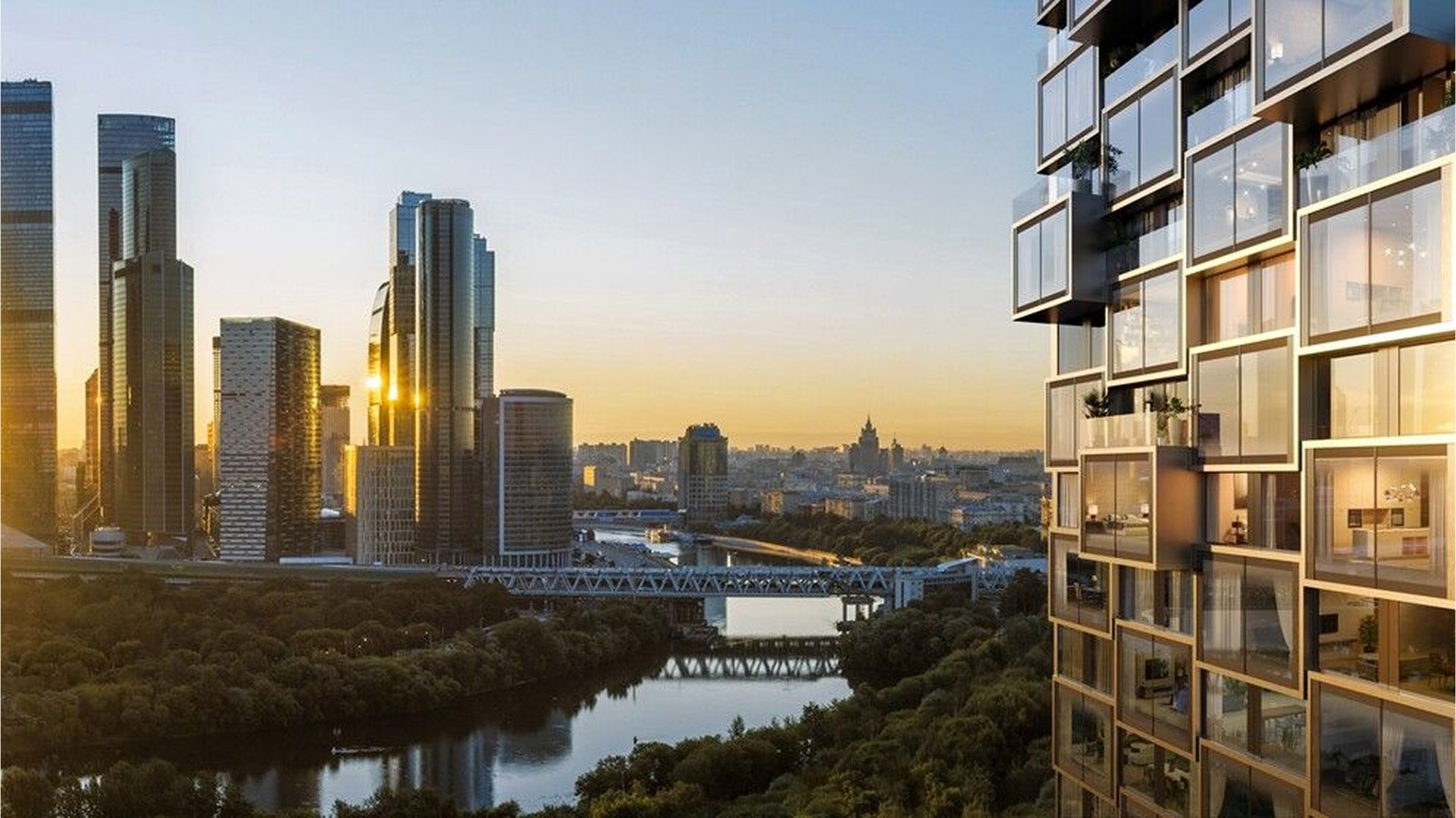 Архитектурное бюро ADM — разработало архитектурную концепцию премиального квартала River Park Towers Kutuzovsky. Бюро создало уникальный облик пяти небоскребов, напоминающих кристаллы, с сложной пластикой фасадов и «парящими» объемами.