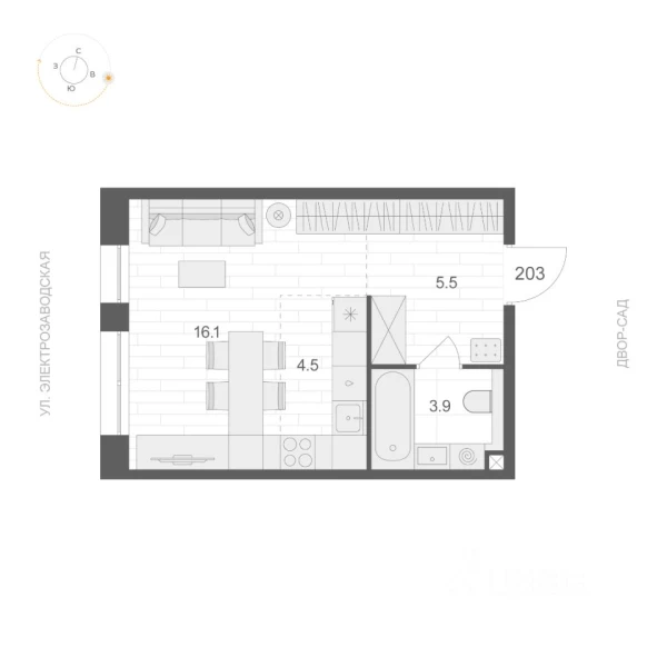 Однокомнатная квартира ЖК «ARTEL (Артель)» · 34.4 м²