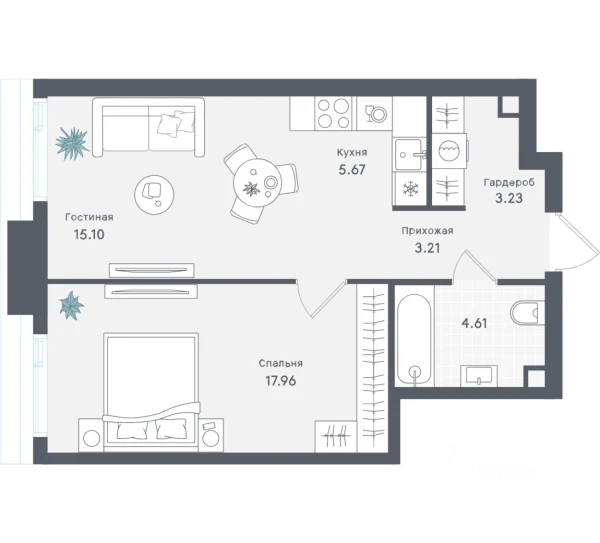 2-комнатная, 55 м², №111772