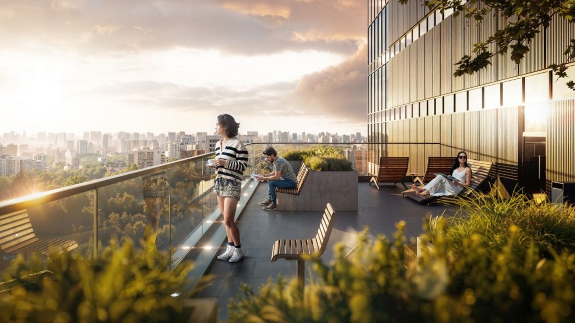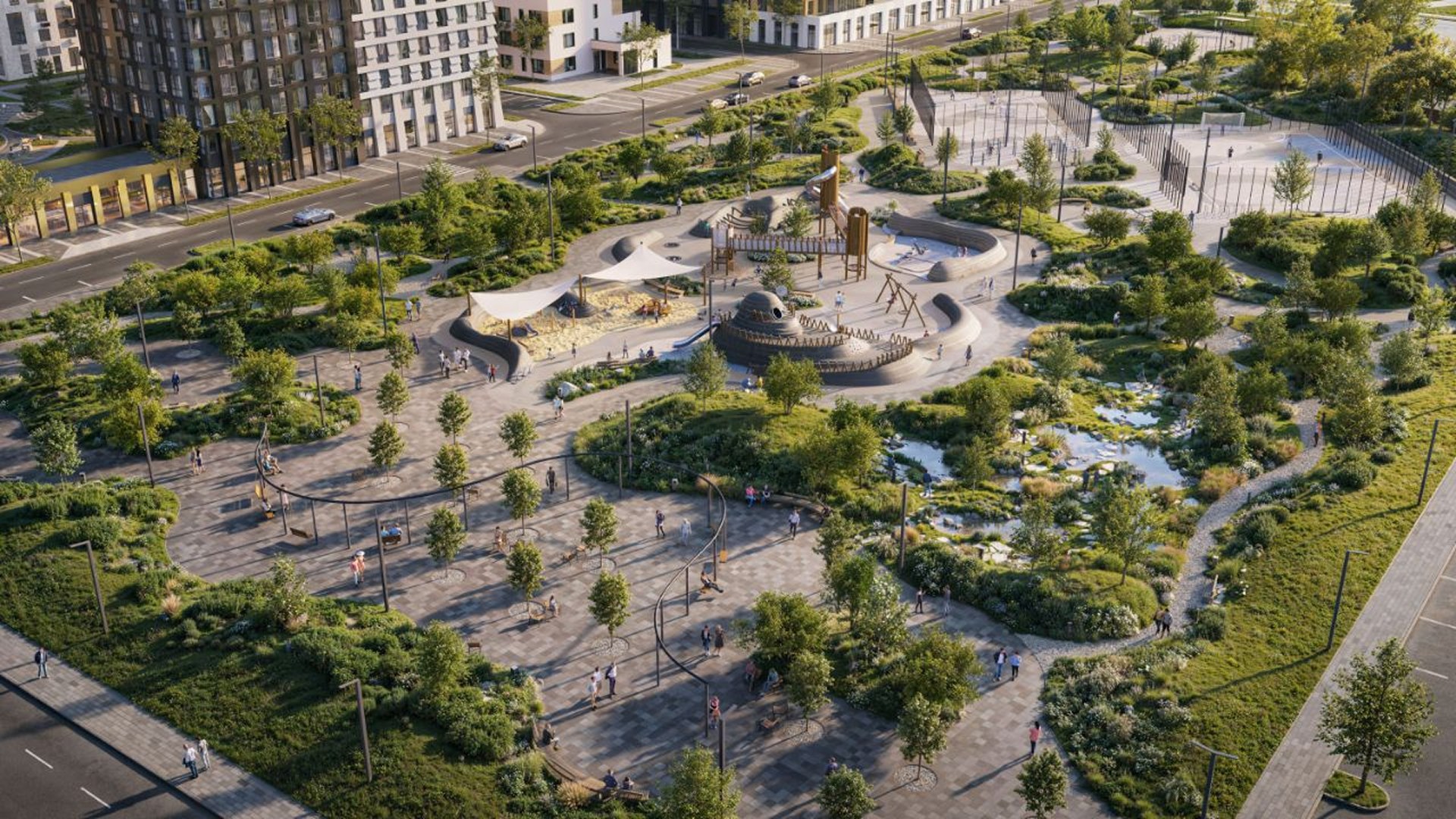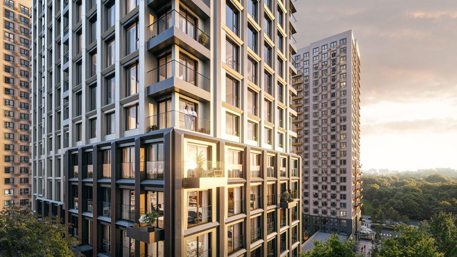 Квартал состоит из 30 домов переменной этажности. Башни-доминанты с индивидуальными архитектурными решениями создают яркий, запоминающийся облик. В проекте представлены планировки с эркерами, угловыми и панорамными окнами, балконами и просторными террасами. На верхних этажах запланированы квартиры с террасами до 55 м².