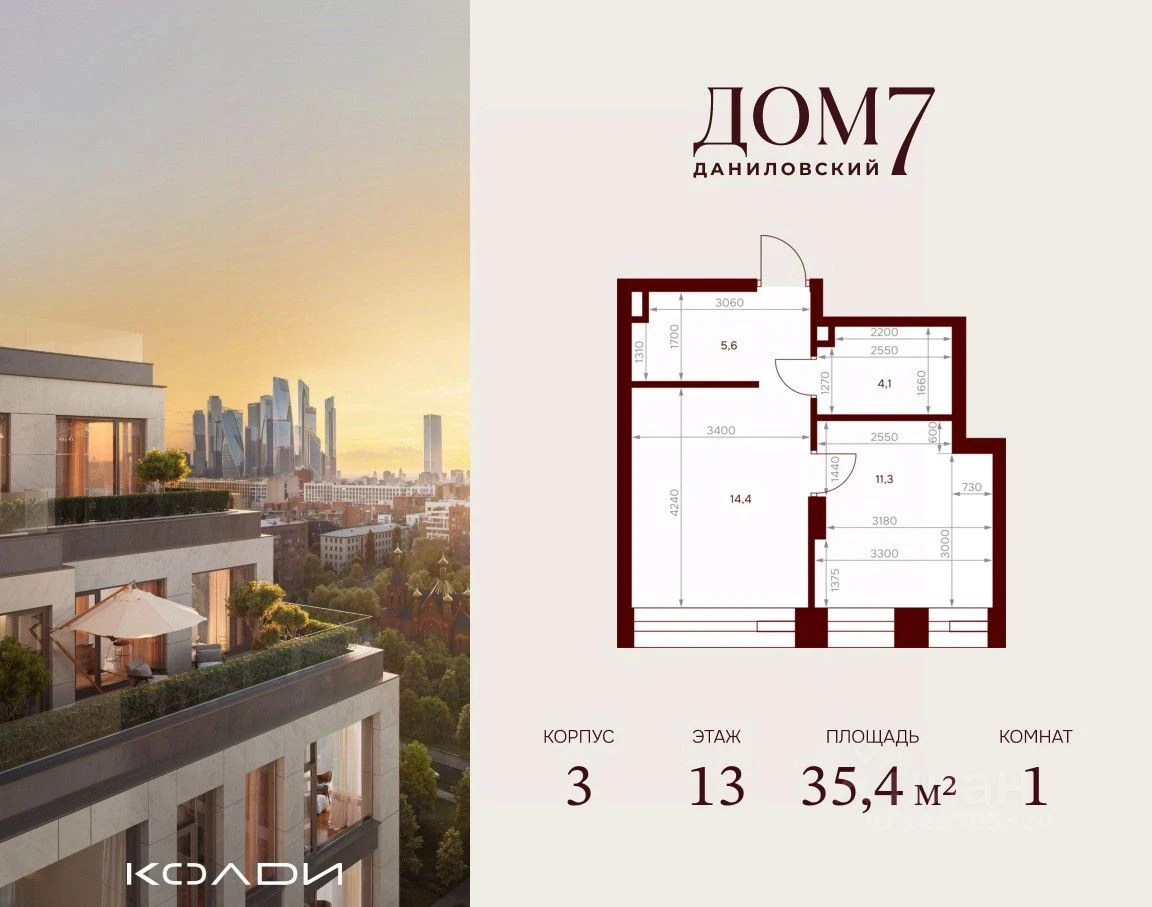 Продается 1-комнатная квартира в ЖК Дом 7 Даниловский - по цене 37 640 820 ₽ от застройщика Колди (Coldy). Находится по адресу: Москва, улица Серпуховский Вал, 7 возле метро Тульская в районе Даниловский. Общая площадь квартиры - 35.4 м². Этаж 13 из 15.