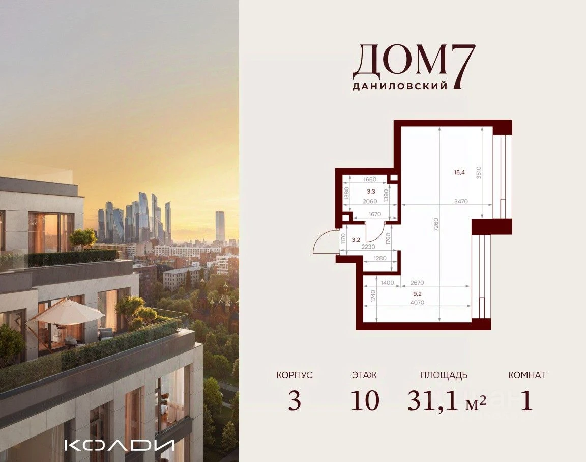 Продается 1-комнатная квартира в ЖК Дом 7 Даниловский - по цене 30 673 930 ₽ от застройщика Колди (Coldy). Находится по адресу: Москва, улица Серпуховский Вал, 7 возле метро Тульская в районе Даниловский. Общая площадь квартиры - 31.1 м². Этаж 10 из 15.