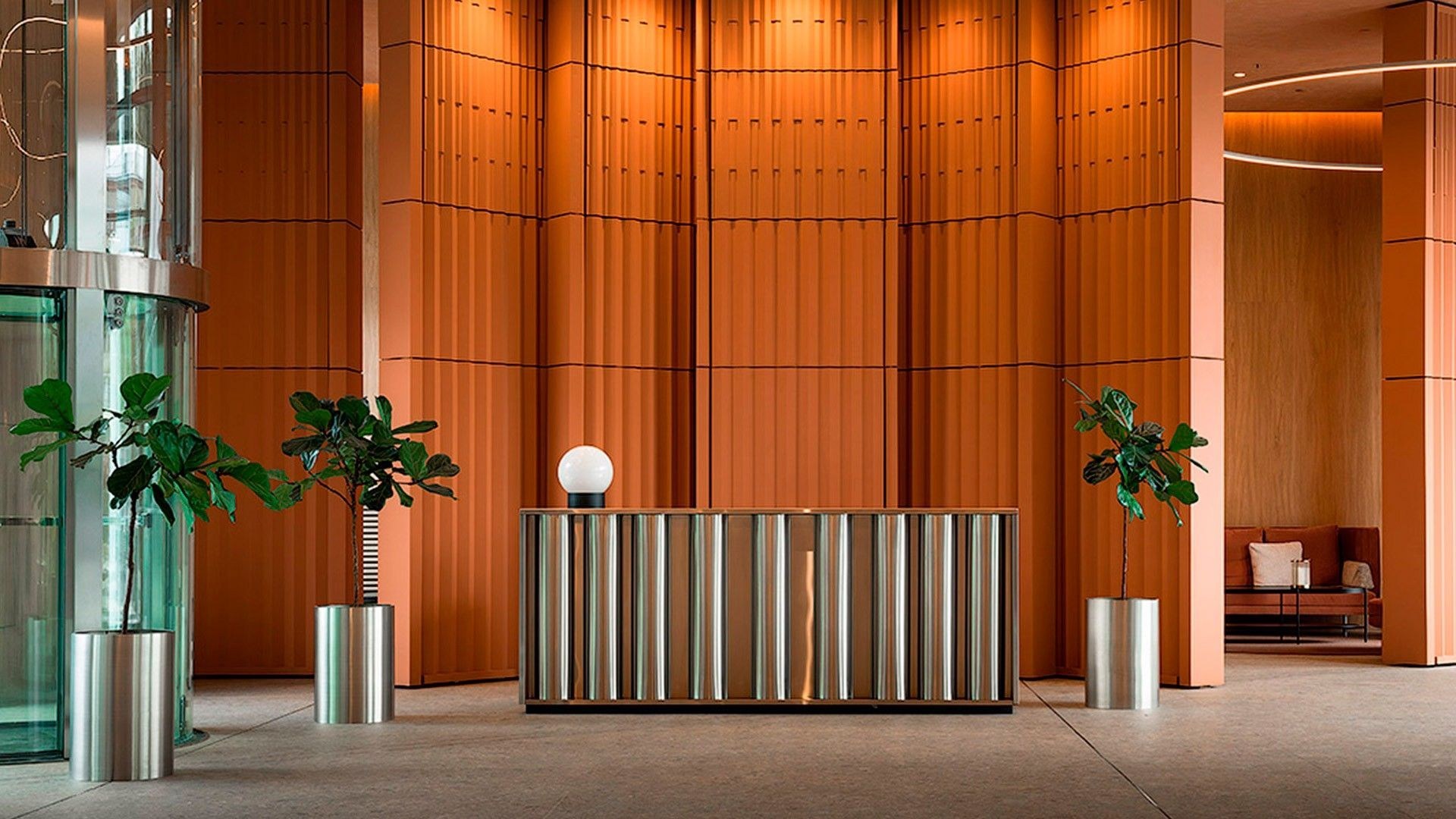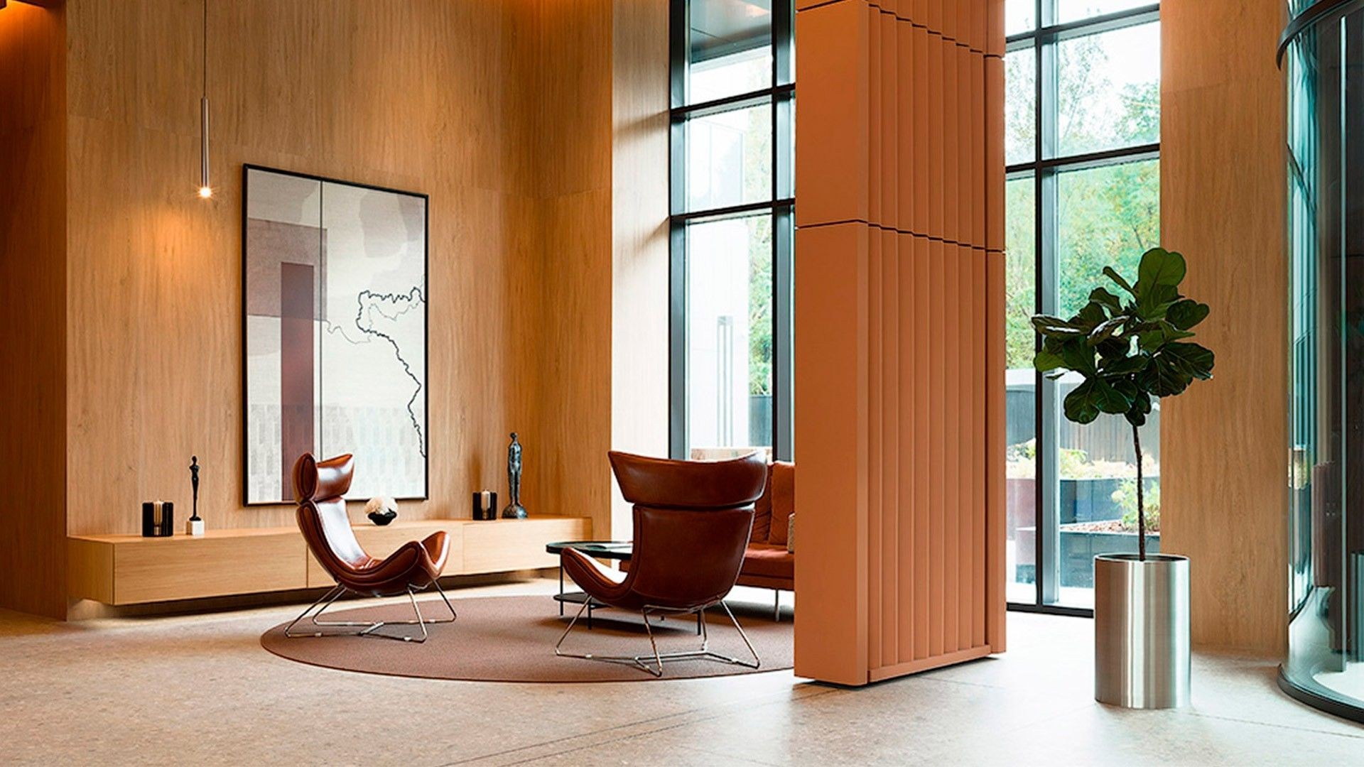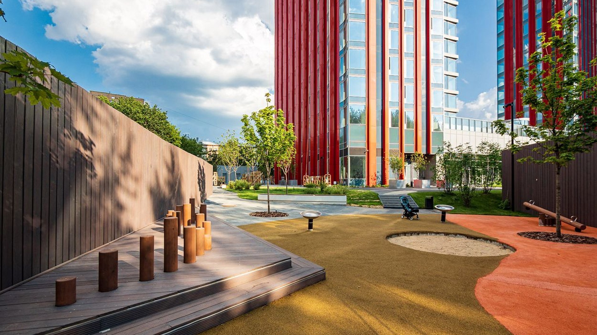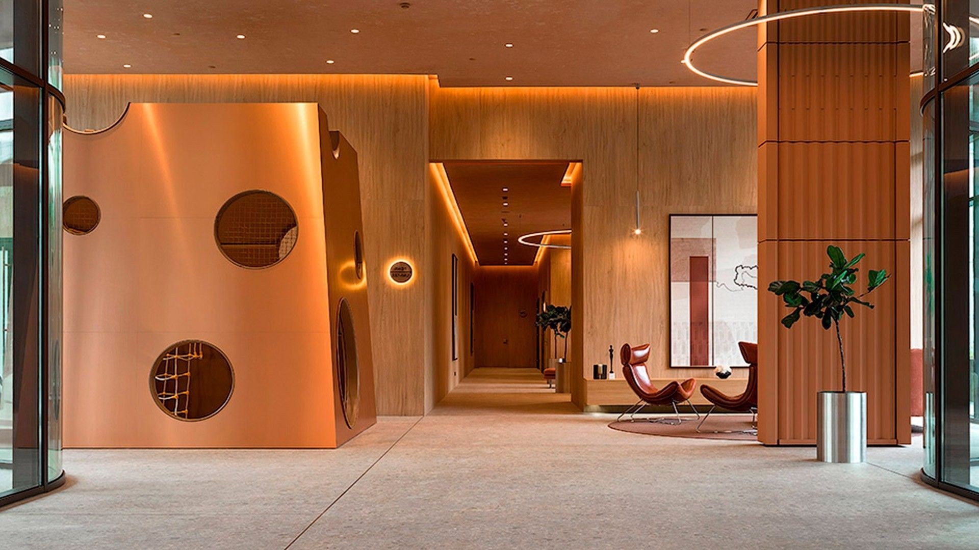 Архитектура зданий выделяется выразительной геометрией и фасадами из стекла и металла в благородных латунных оттенках, что придаёт силуэту лёгкость и современный облик. За дизайн входных групп и МОПов отвечает бюро HAAST, известное своими функциональными и эстетичными общественными пространствами.