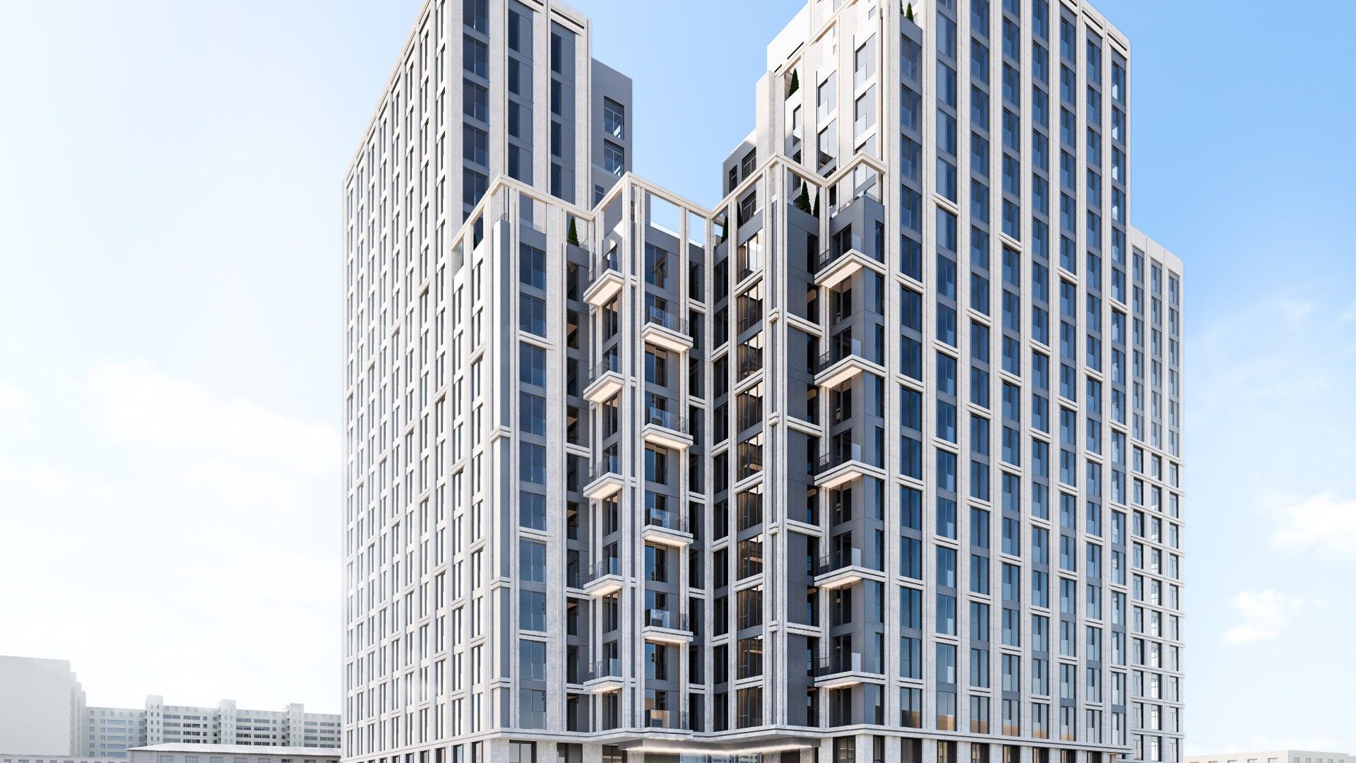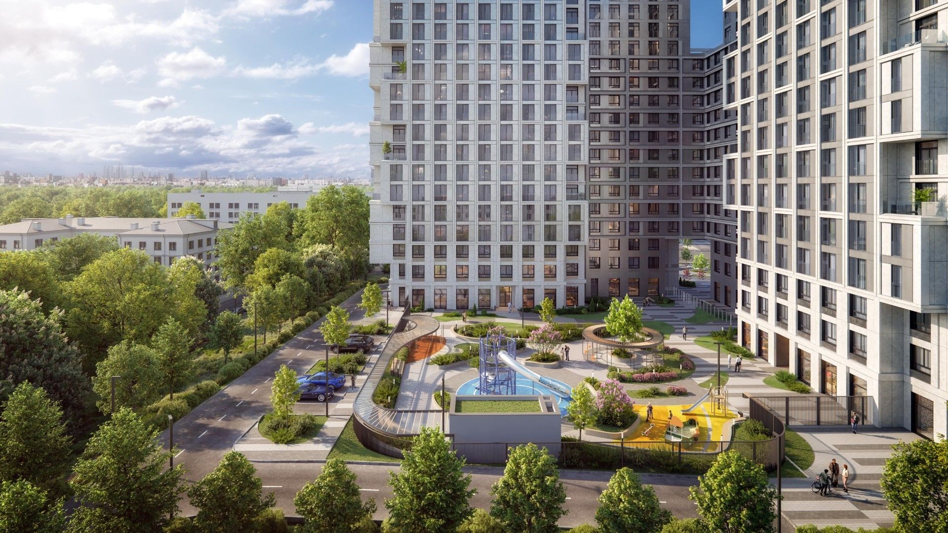 EVOPARK Сокольники — жилой комплекс бизнес-класса, расположенный всего в 300 метрах от парка «Сокольники» и в шаговой доступности от станции метро «Преображенская площадь». Проект включает два корпуса переменной этажности — от 13 до 20 этажей. Архитектура выдержана в стиле конструктивизма: строгие формы, прямые линии и панорамное остекление создают современный и выразительный облик. Корпуса размещены под углом друг к другу, формируя приватный внутренний двор.