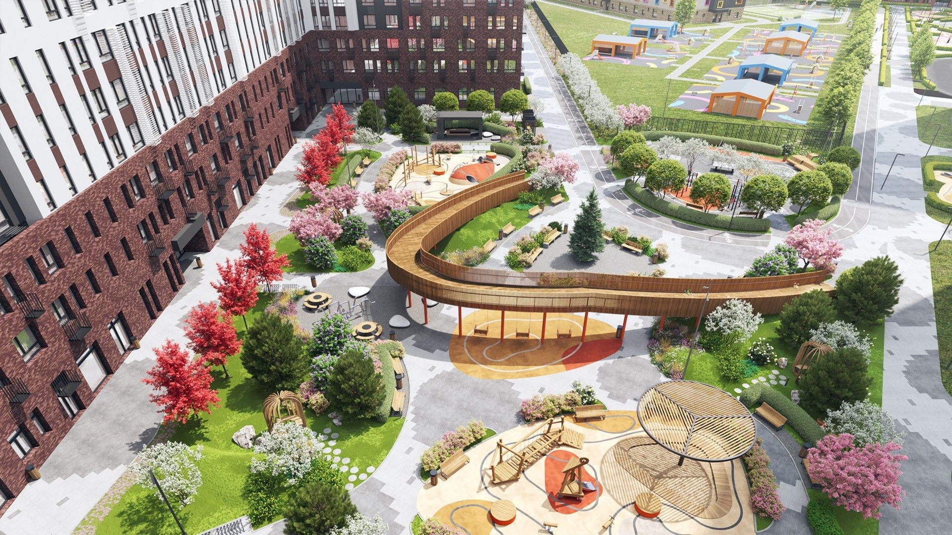 На территории проекта уже функционируют детские сады и школы, развивающие студии, медицинские центры, супермаркеты, кафе, салоны красоты, отделения банков и фитнес-клуб с бассейном. Для активного отдыха предусмотрены спортивные площадки, стадионы, хоккейные коробки и роллердромы. Пространство комплекса дополнено торгово-развлекательным центром, парками с авторским озеленением, безопасными детскими площадками Kompan и пешеходными маршрутами для прогулок.