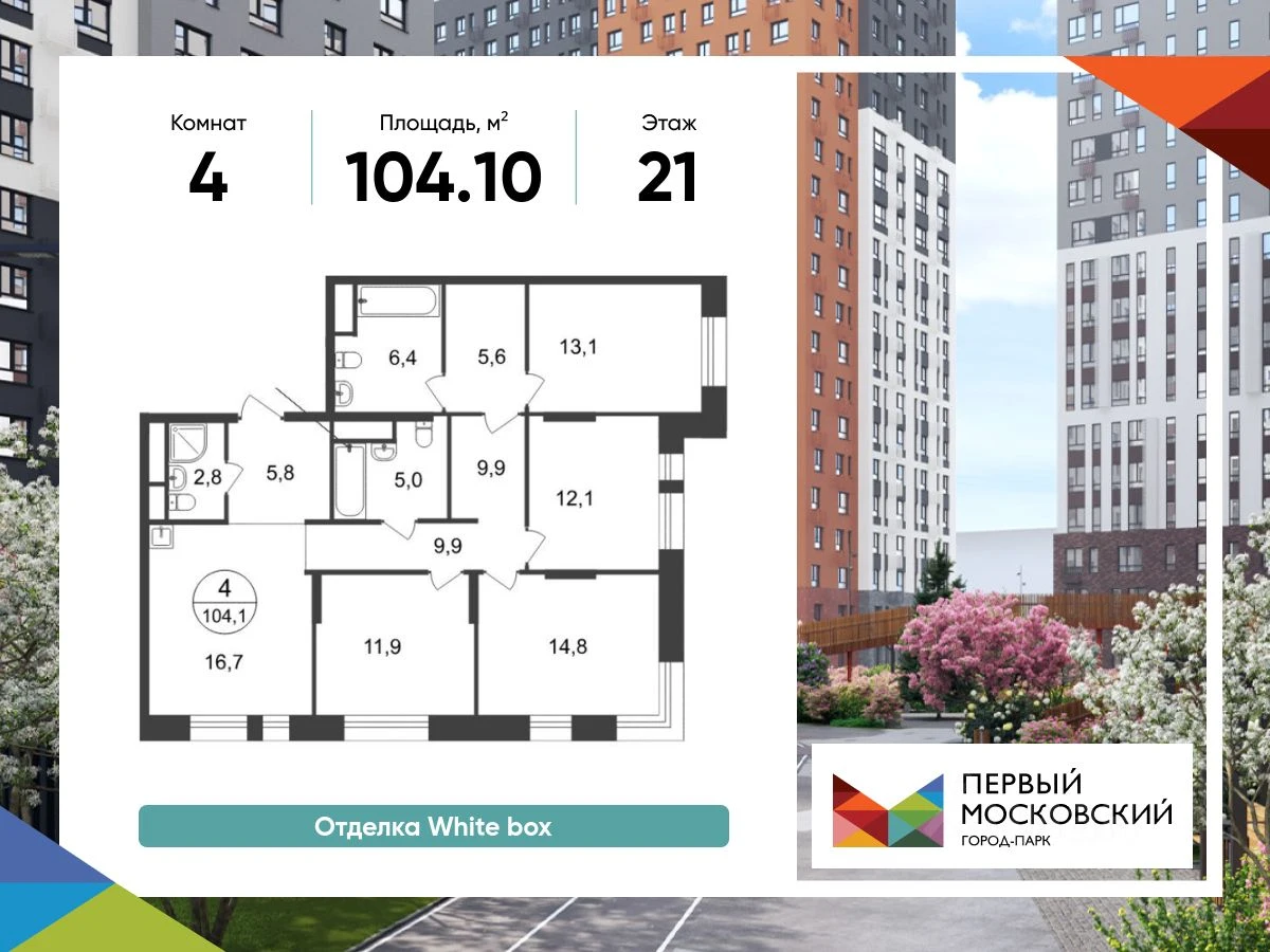 4-комнатная, 104.1 м², №117310