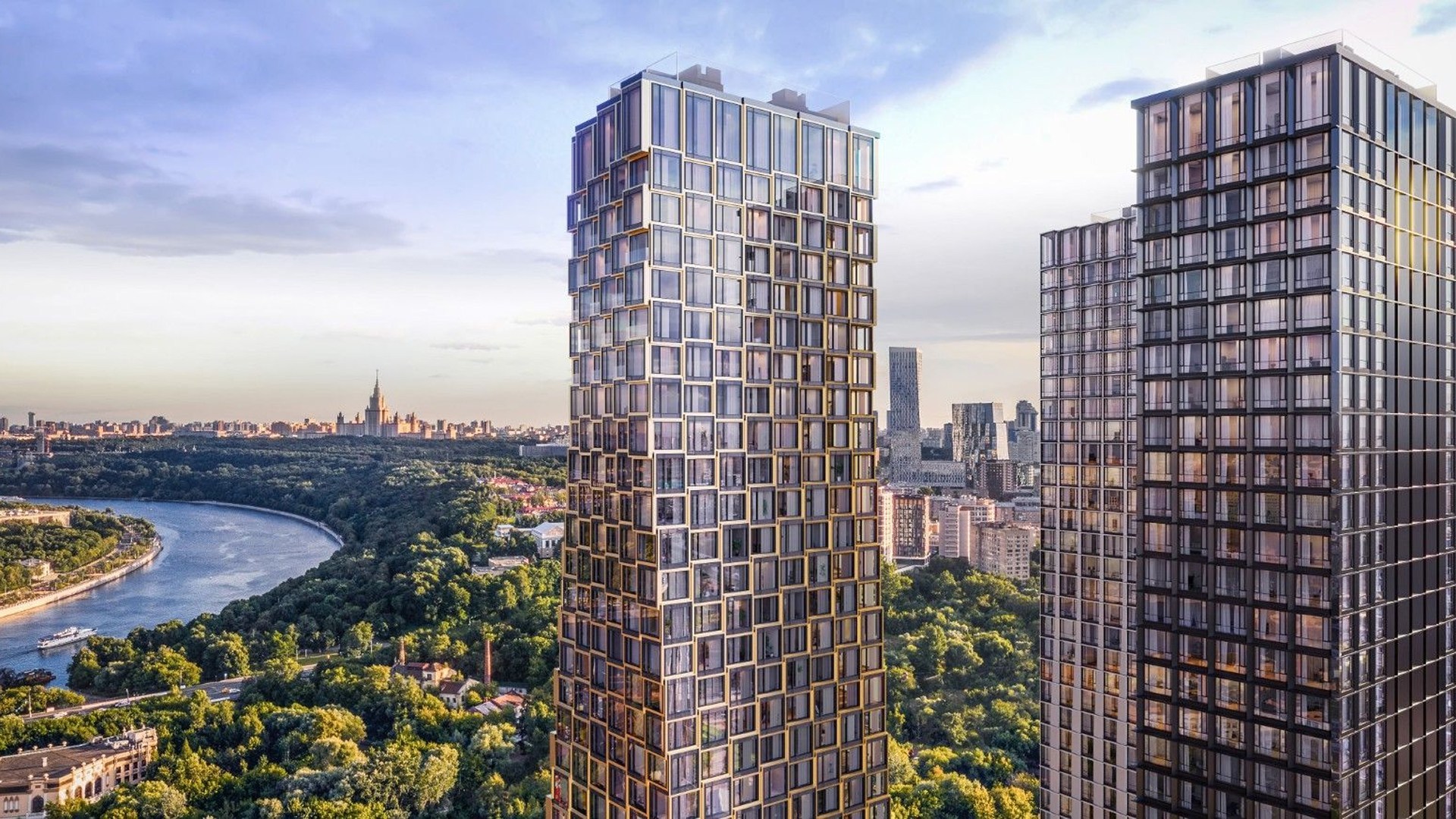 Hide — премиальный жилой комплекс в Раменках, рядом с Воробьёвской набережной и природным заказником «Долина реки Сетунь». Проект объединяет три небоскрёба высотой 41 этаж с авторской архитектурой от бюро ADM и выдающимся дизайном интерьеров от OLEG KLODT и Sundukovy Sisters. Фасады зданий выполнены из стекла и анодированного алюминия в латунных и антрацитовых тонах, подчёркивая премиальный облик комплекса.