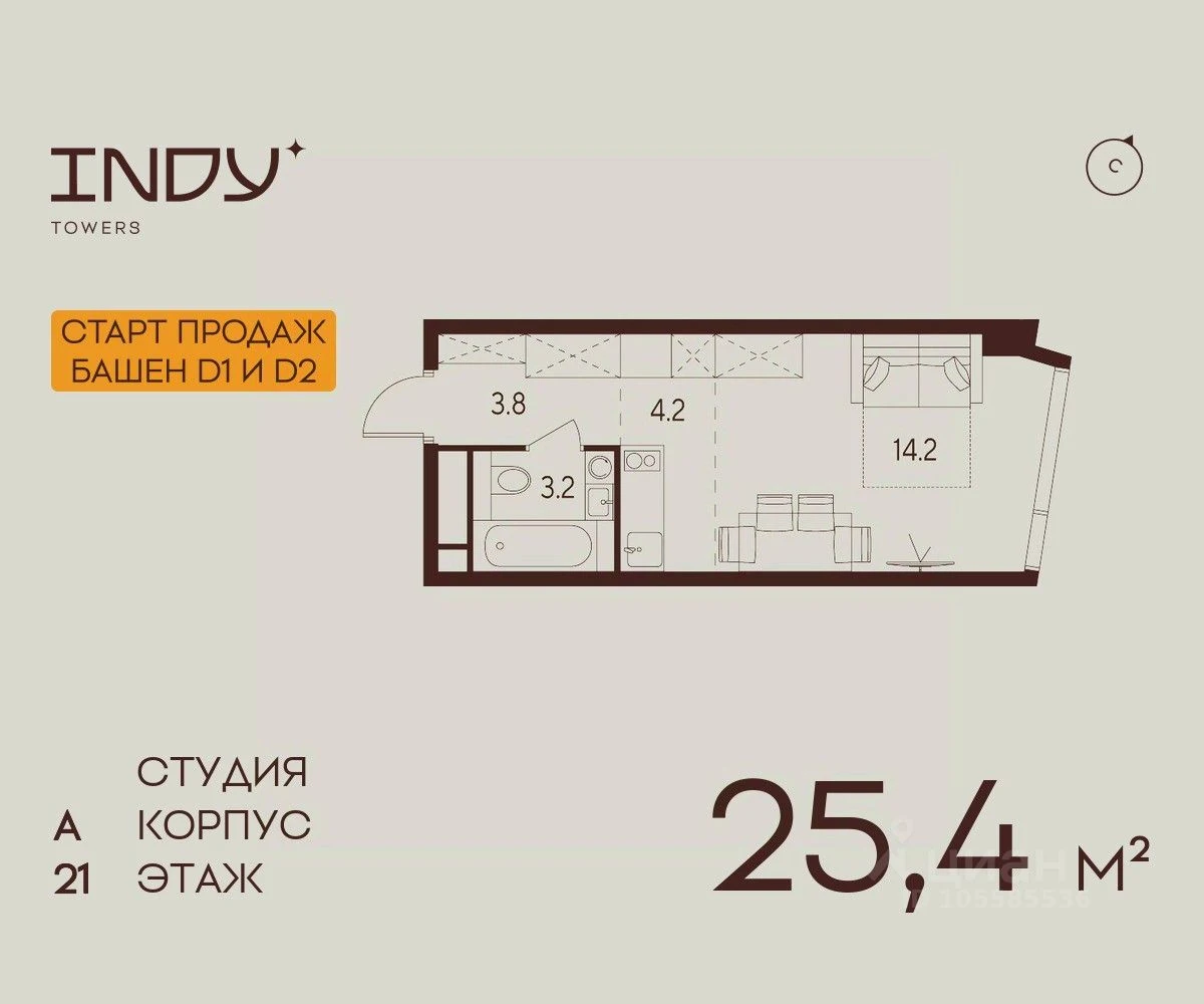 Продается студия квартира в ЖК INDY TOWERS (Инди Тауэрз) - по цене 19 493 910 ₽ от застройщика Аквилон. Находится по адресу: Москва, улица Куусинена возле метро Зорге в районе Хорошевский. Общая площадь квартиры - 25.4 м². Этаж 21 из 26.