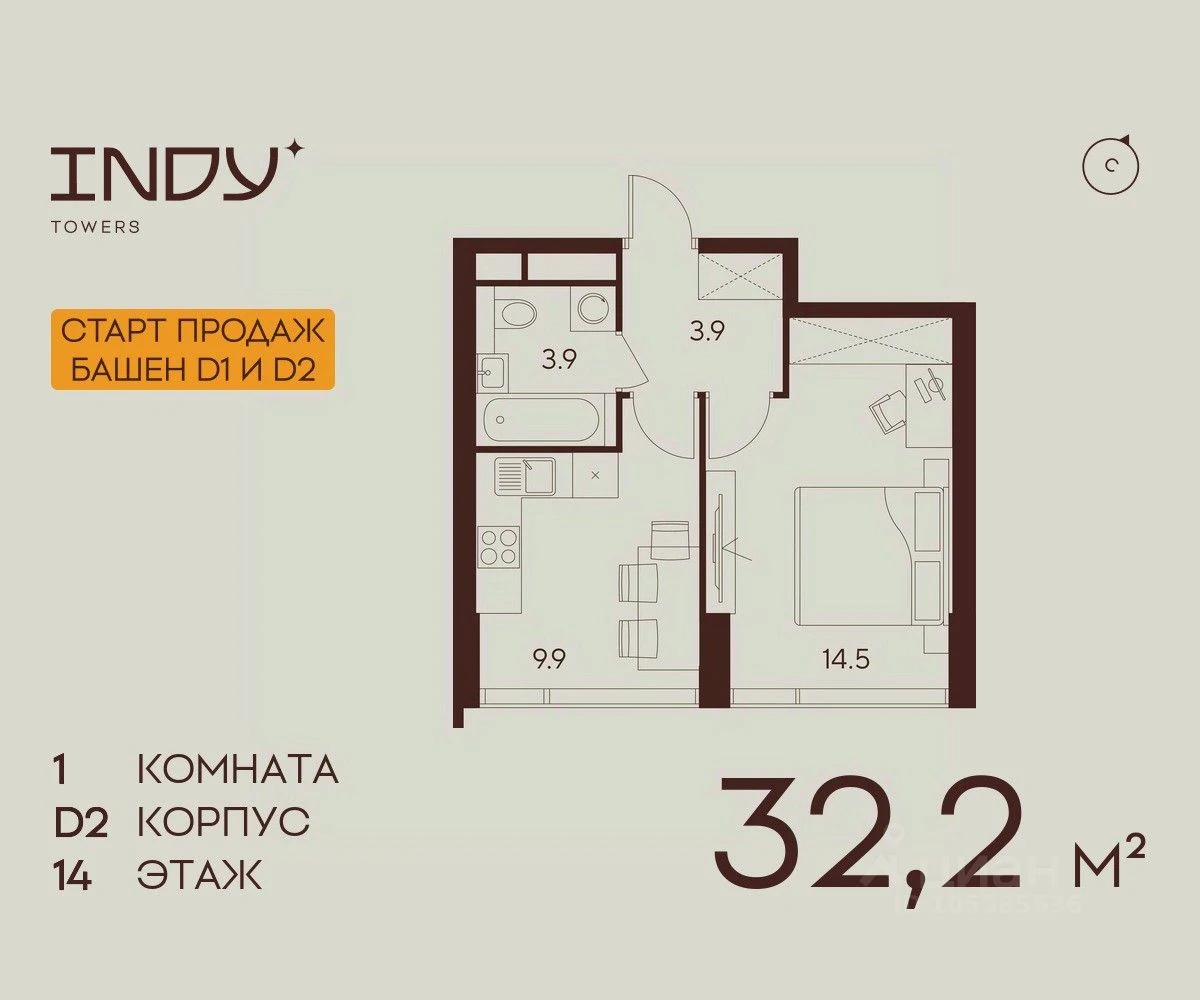 Продается 1-комнатная квартира в ЖК INDY TOWERS (Инди Тауэрз) - по цене 21 208 929 ₽ от застройщика Аквилон. Находится по адресу: Москва, улица Куусинена возле метро Зорге в районе Хорошевский. Общая площадь квартиры - 32.2 м². Этаж 14 из 43.
