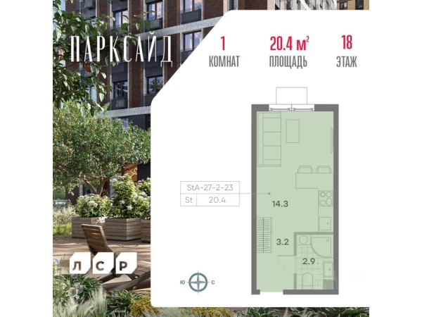 Студия ЖК «Инноватор», 22.49 м², №4169