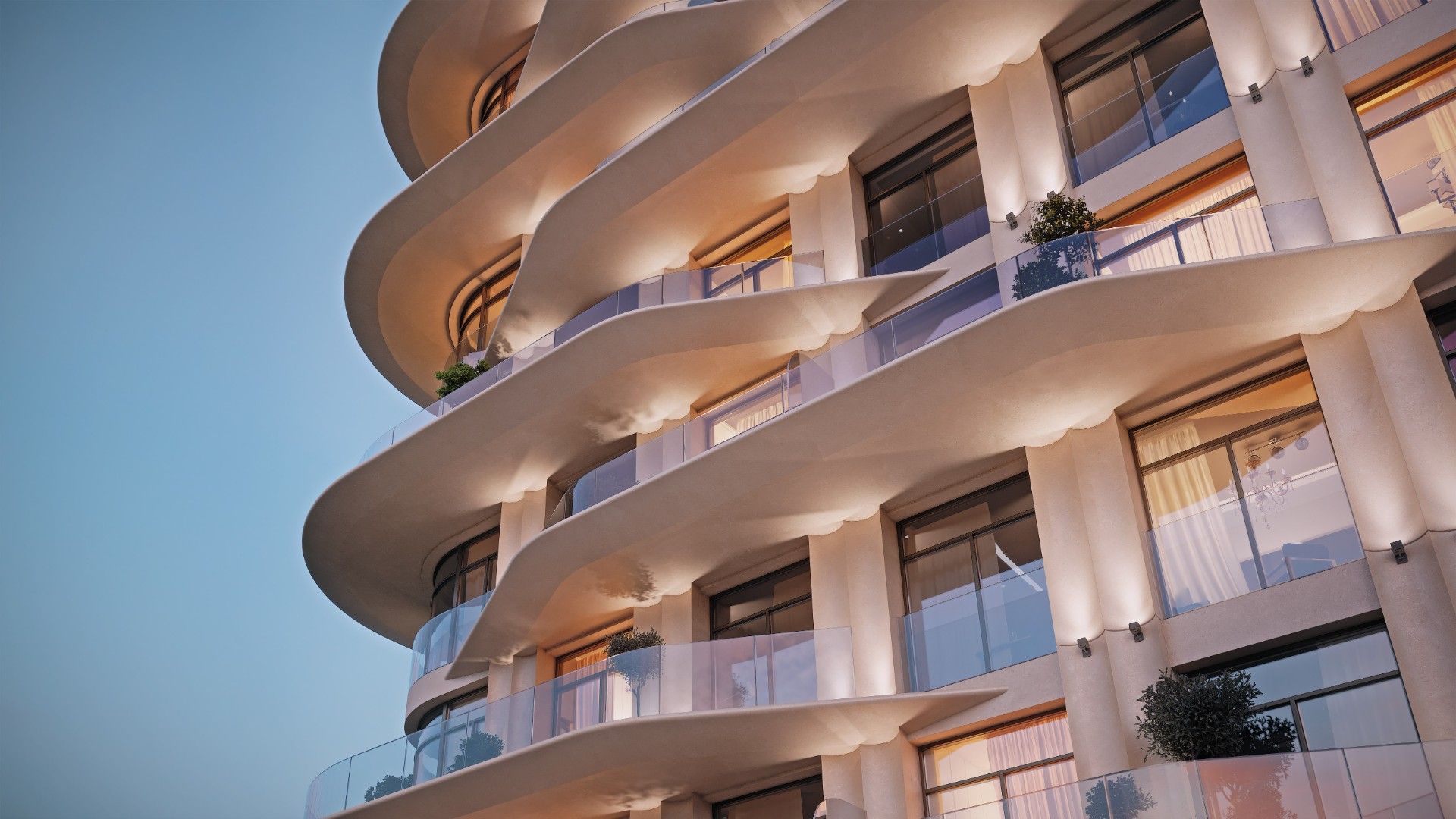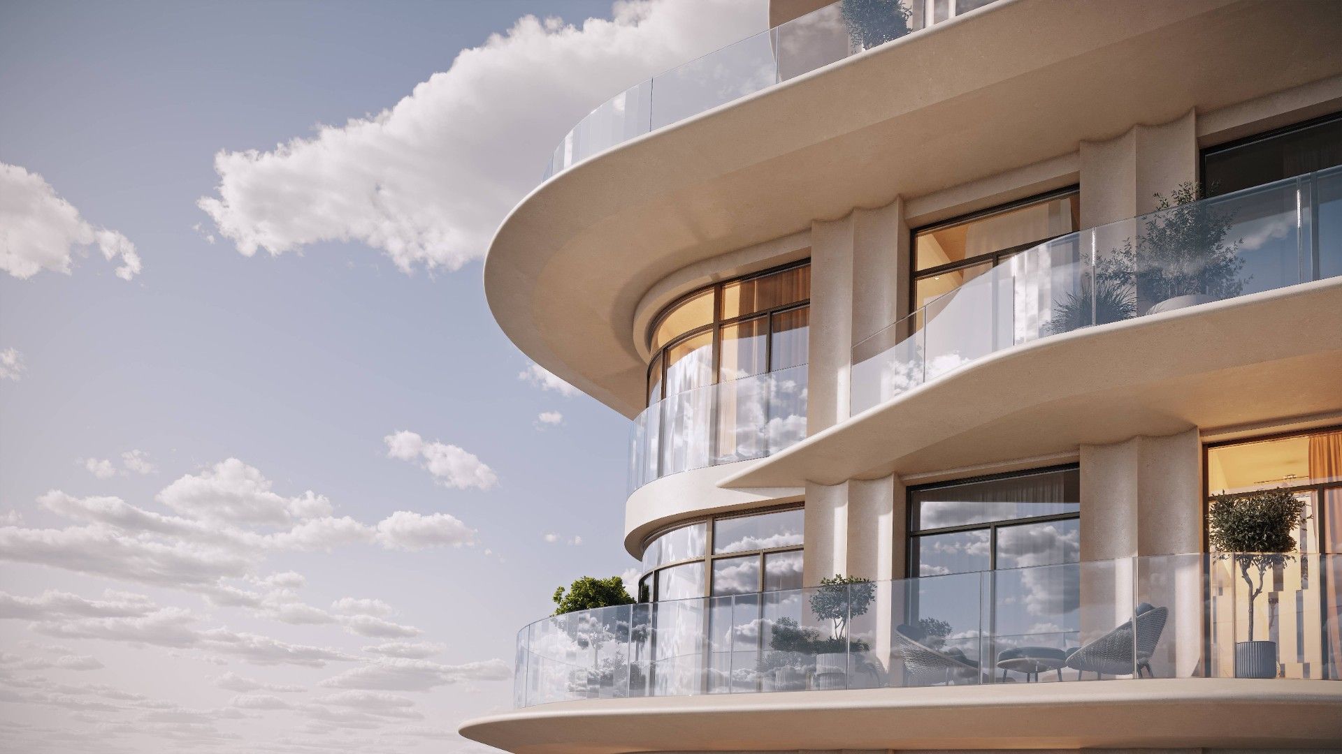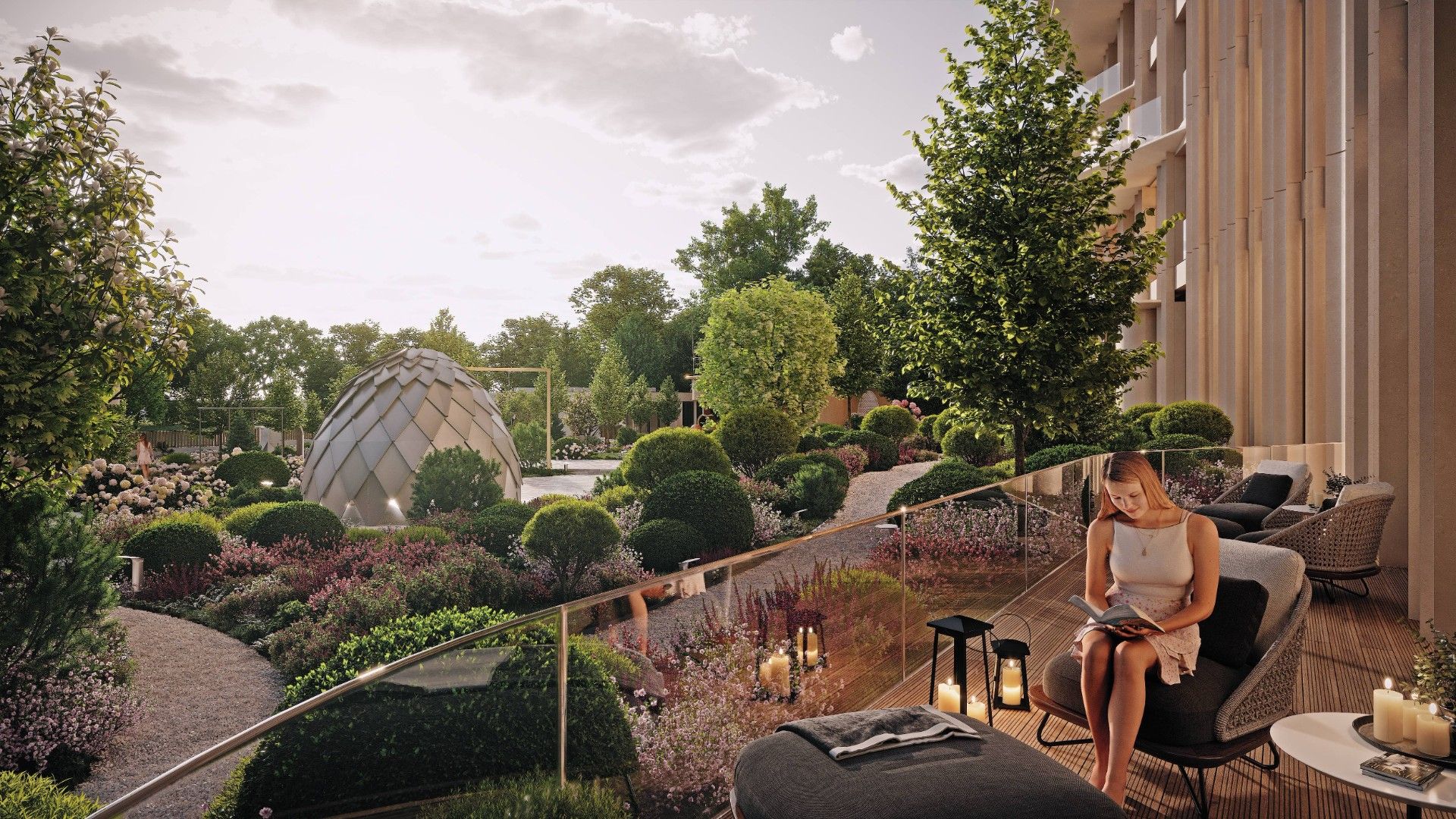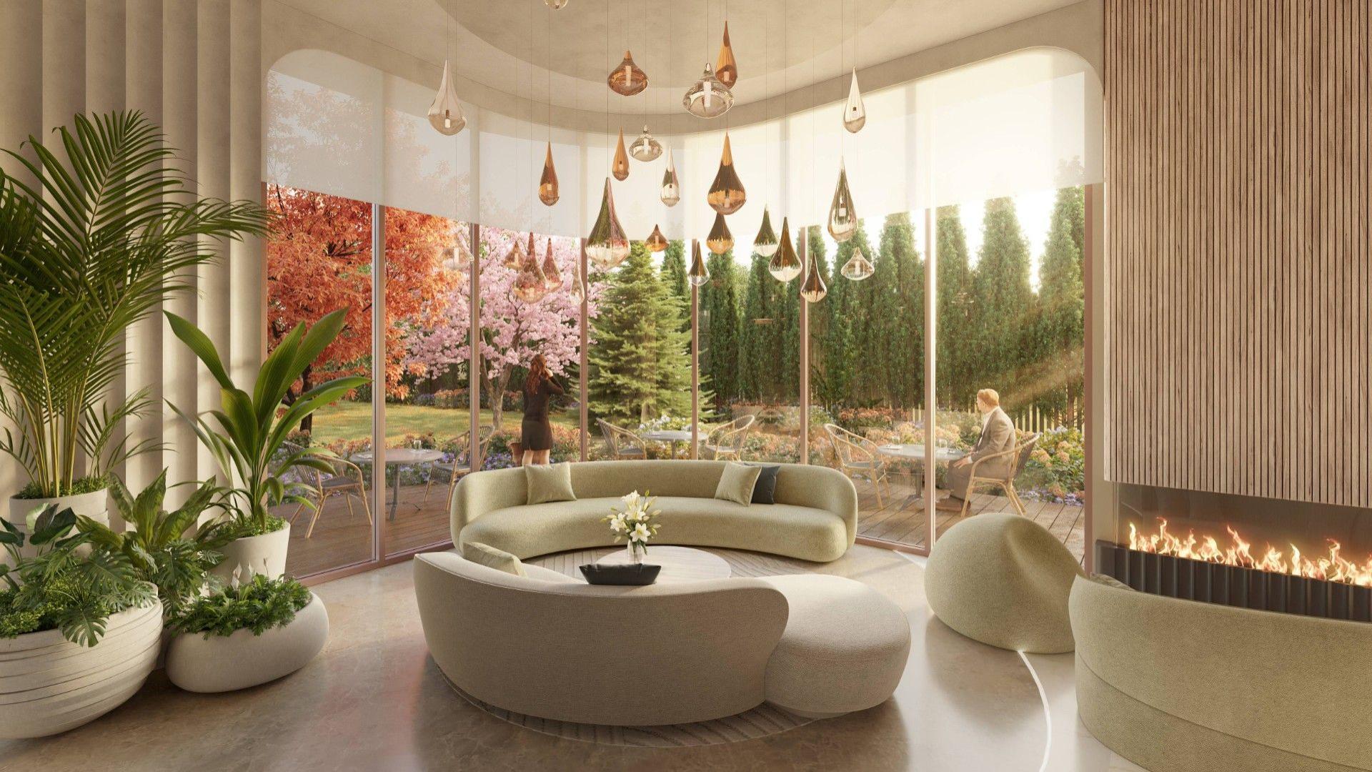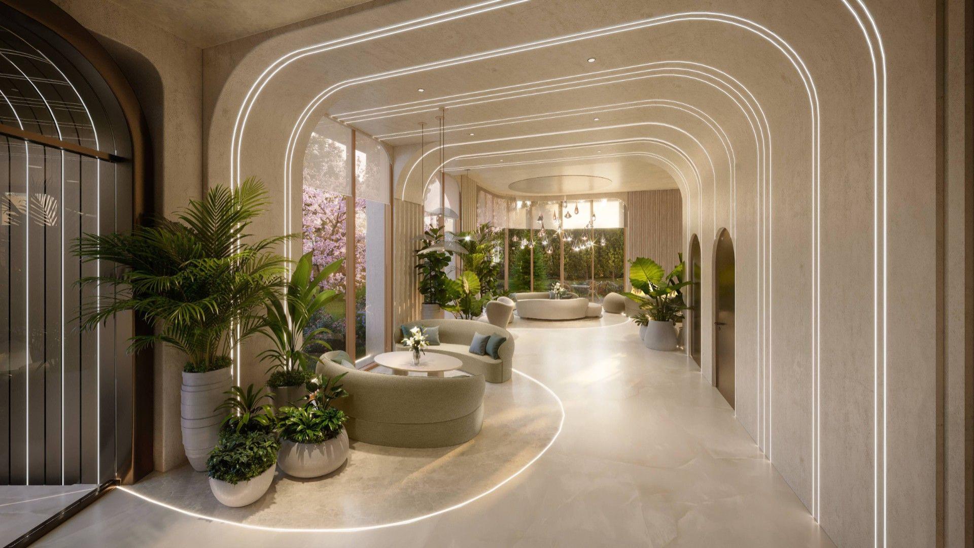 Архитектурную концепцию разработало японское бюро NIKKEN. Плавные линии фасадов, использование натурального камня и панорамное остекление формируют лёгкий, изысканный силуэт. Здание наполнено светом, воздухом и ощущением пространства.