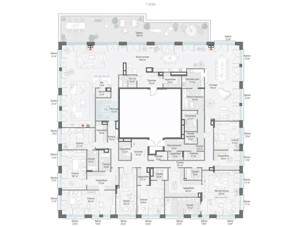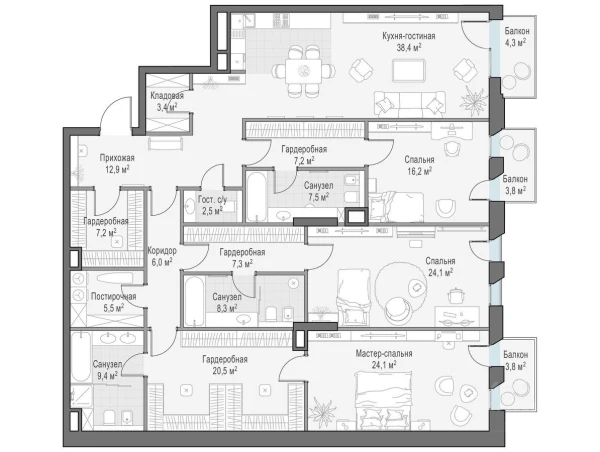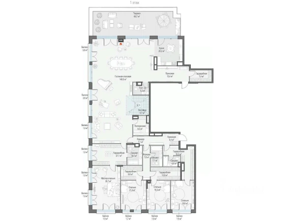 Четырехкомнатная квартира ЖК «Клубный дом Обыденский № 1» · 502.7 м²