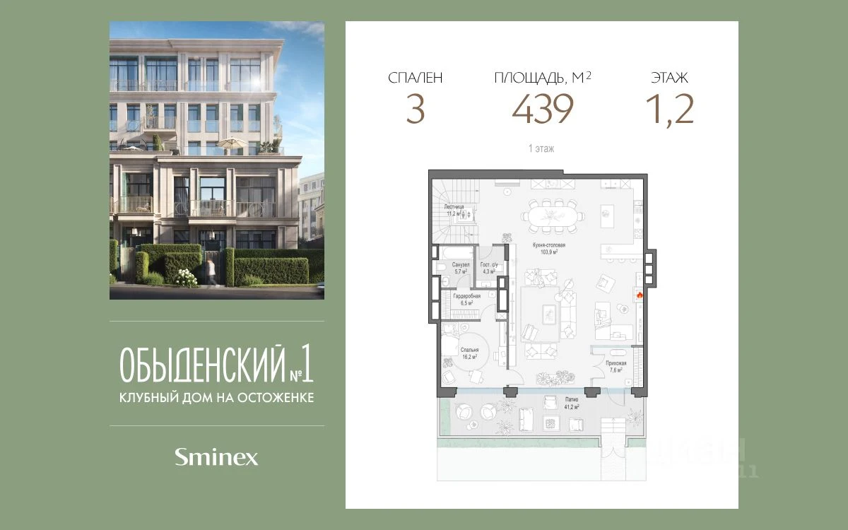 Продается 3-комнатная квартира в ЖК Клубный дом Обыденский № 1 - по цене 1 528 010 000 ₽ от застройщика Sminex. Находится по адресу: Москва, 3-й Обыденский переулок возле метро Кропоткинская в районе Хамовники. Общая площадь квартиры - 439 м². Этаж 1 из 6.