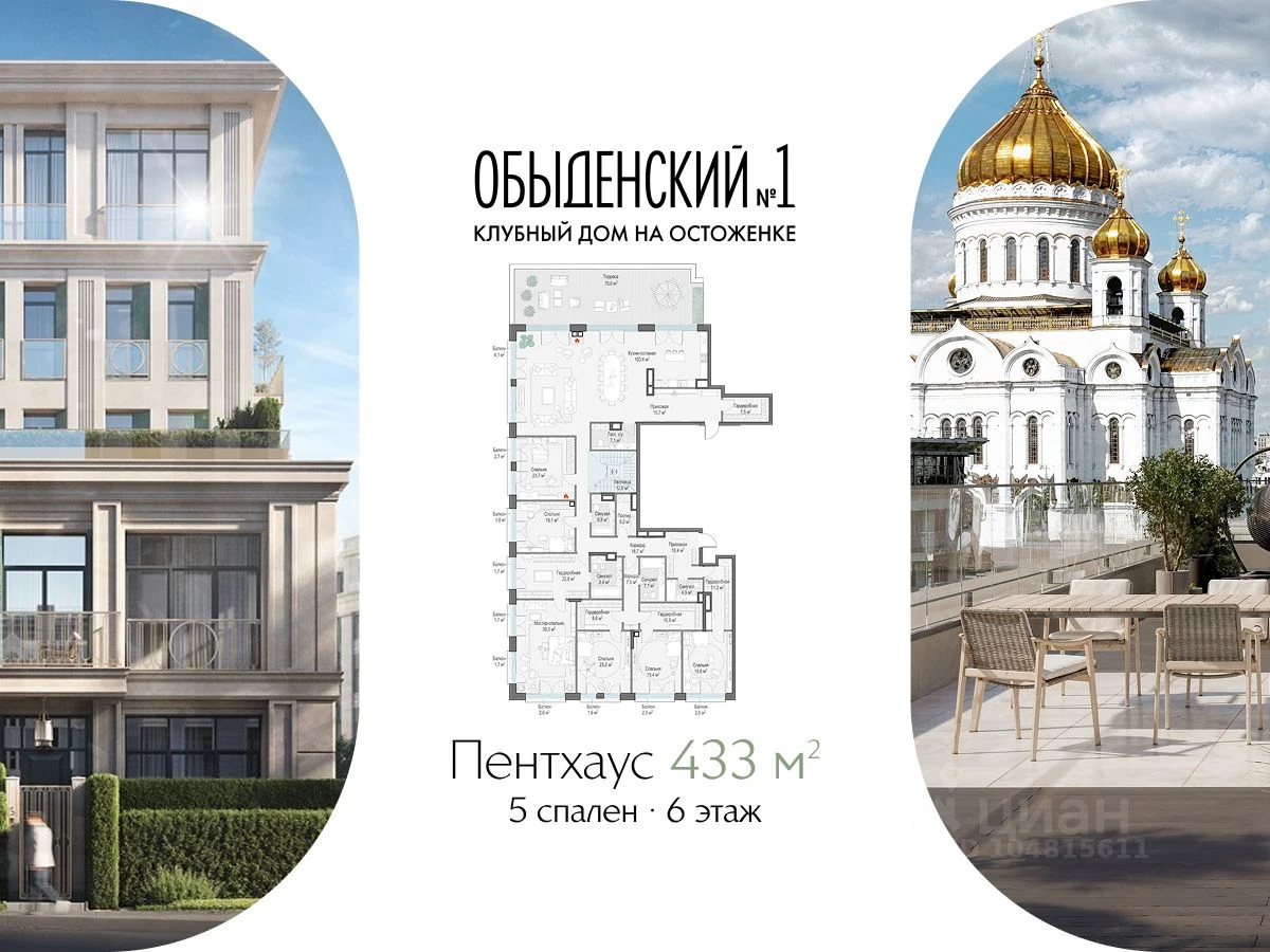 Продается 5 квартира в ЖК Клубный дом Обыденский № 1 - по цене 4 149 120 000 ₽ от застройщика Sminex. Находится по адресу: Москва, 3-й Обыденский переулок возле метро Кропоткинская в районе Хамовники. Общая площадь квартиры - 433 м². Этаж 6 из 6.