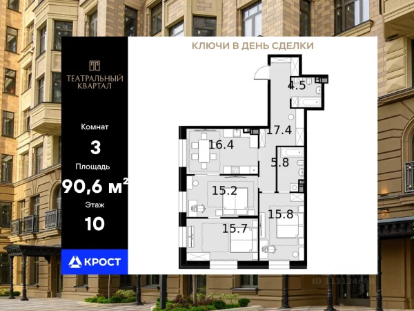 Двухкомнатная квартира ЖК «Клубный квартал «Фрунзенская набережная», 86.1 м², №3266