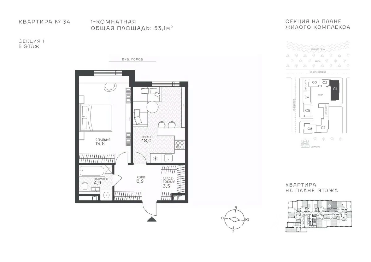 Продается 1-комнатная квартира в ЖК Клубный квартал Крылатская 33 - по цене 34 886 700 ₽ от застройщика СИЯНИЕ. Находится по адресу: Москва, Крылатская улица возле метро Крылатское в районе Крылатское. Общая площадь квартиры - 53.1 м². Этаж 7 из 43.
