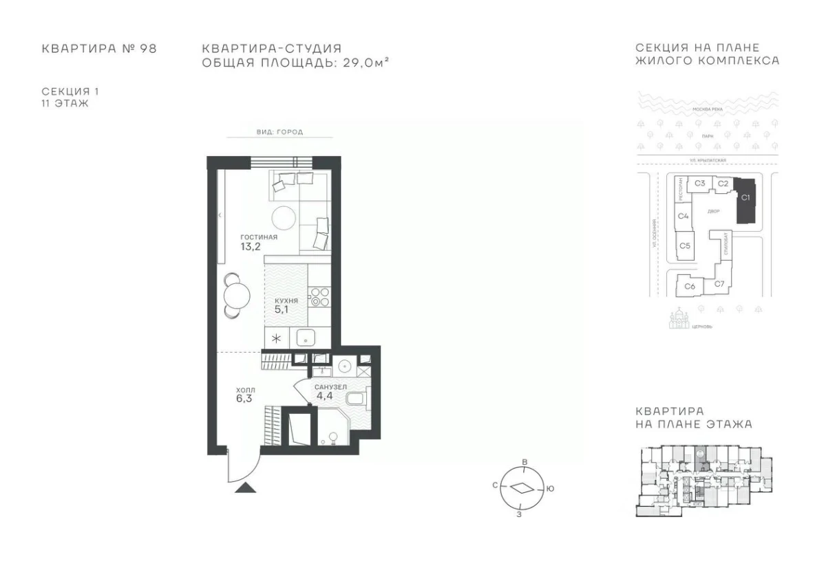 Студия, 29 м², №112416