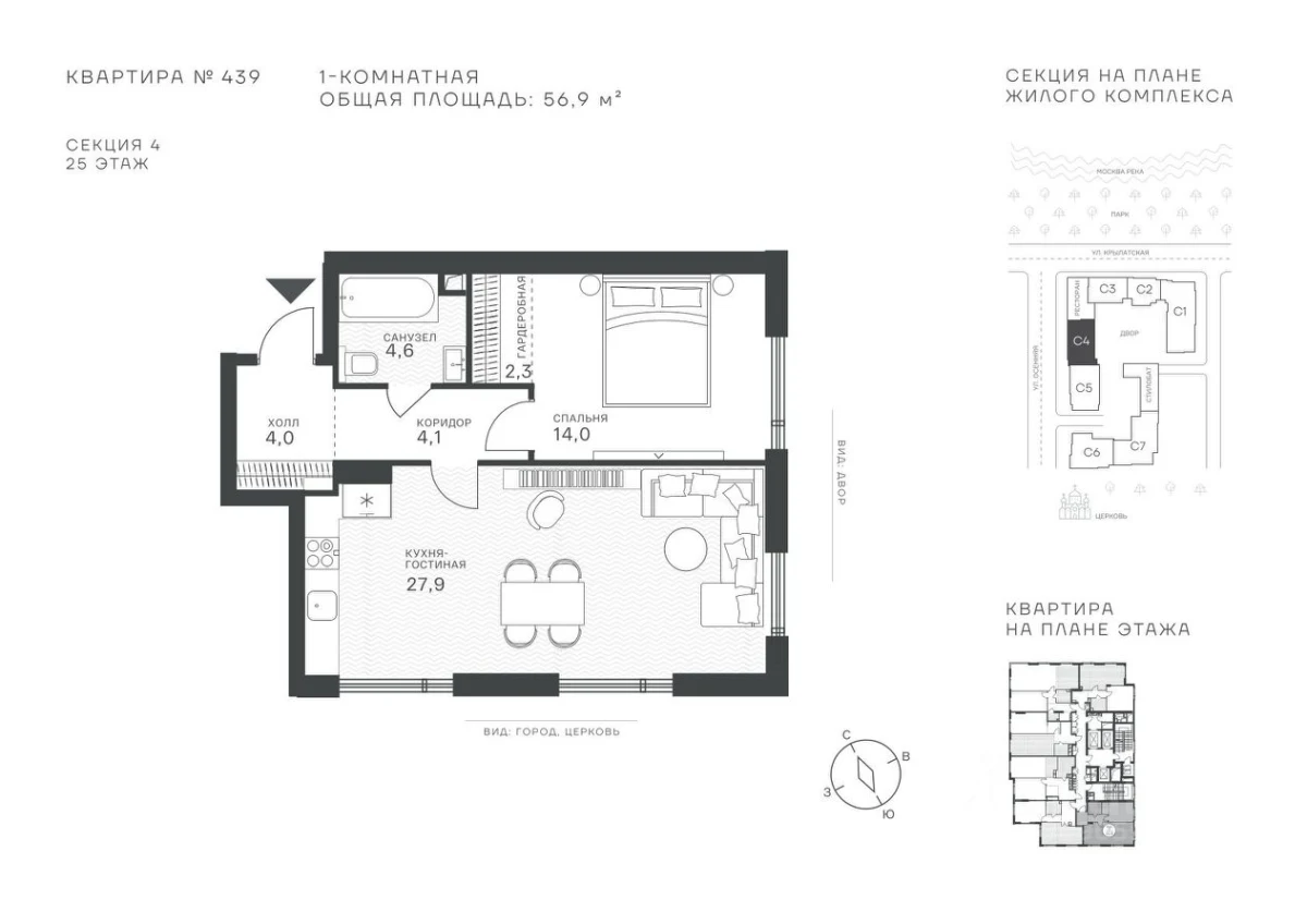 1-комнатная, 56.9 м², №112451