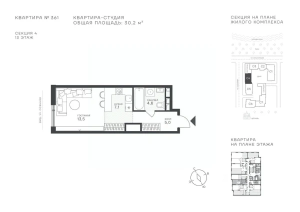 Студия, 27.98 м², №117001