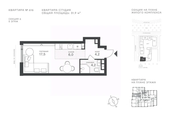 1-комнатная, 32.29 м², №117002