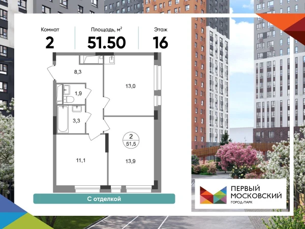 2-комнатная, 55.04 м², №119118