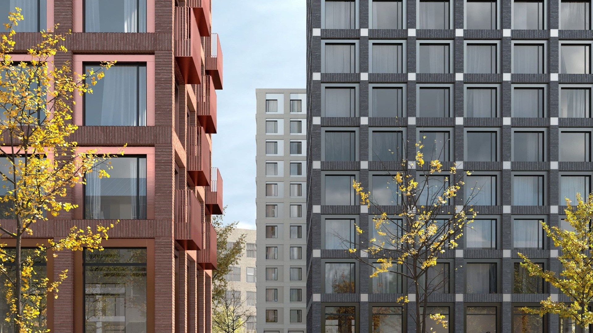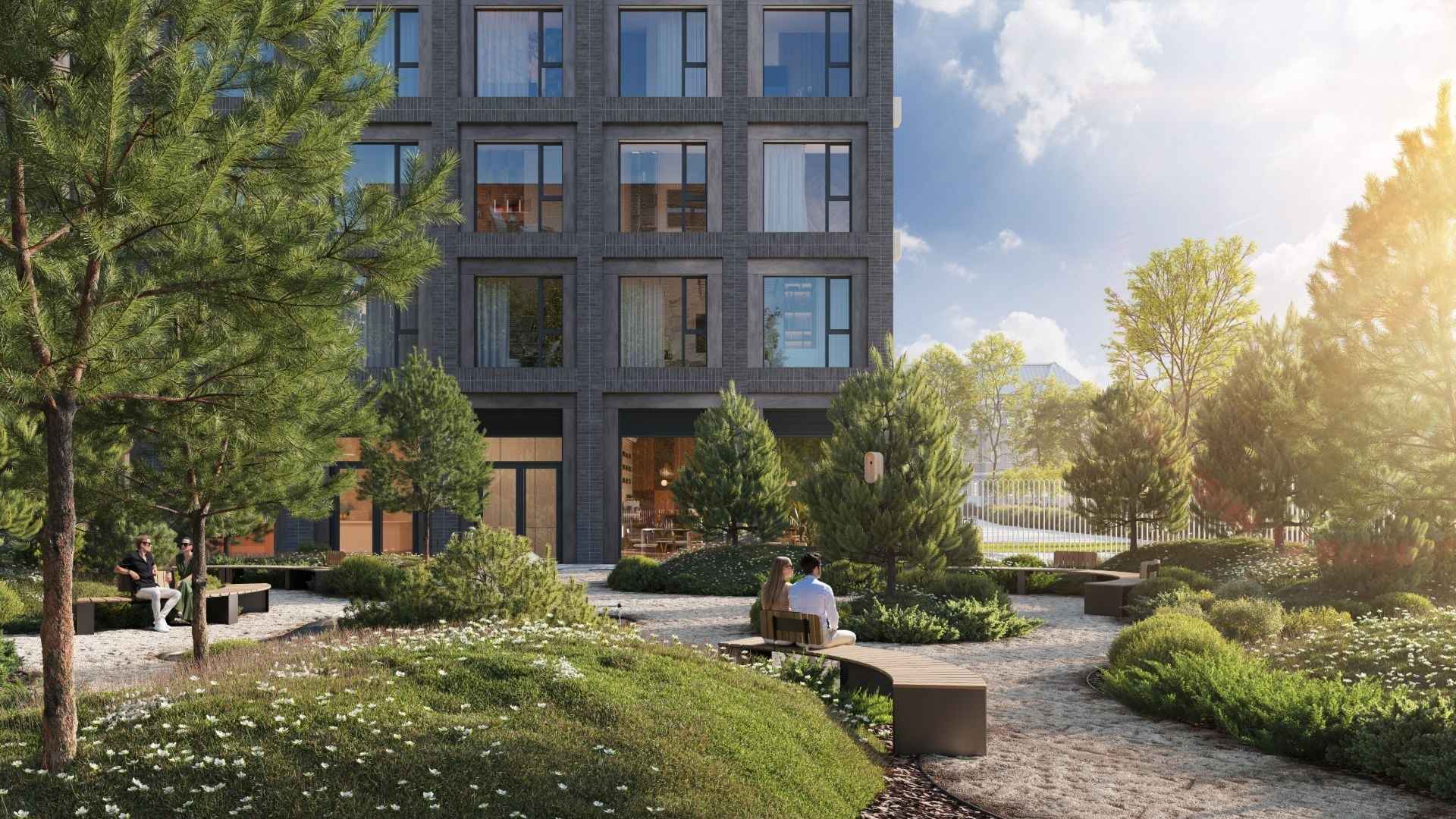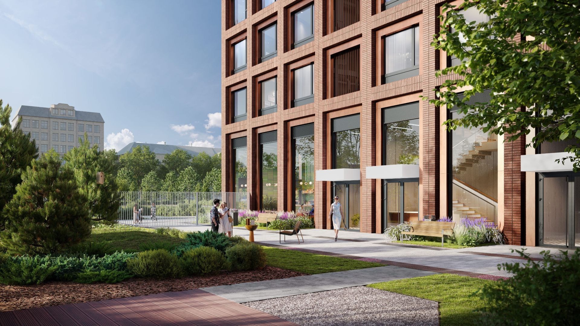 Проект разработан бюро ARCH(E)TYPE. Архитектура вдохновлена индустриальным прошлым района: фасады из бетона, стекла и металла оформлены светильниками в память о ламповом заводе. Каждый корпус имеет индивидуальную цветовую гамму — белую, серую или красную.