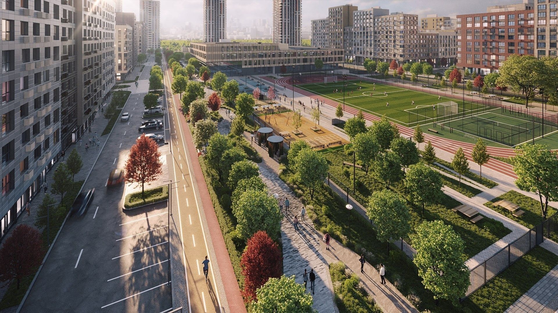 Проект включает 10 башен высотой до 28 этажей и 7 урбан-блоков по 6–13 этажей. Архитектура разработана японским бюро Nikken Sekkei. Дома образуют «город в городе» с квартальной застройкой, внутренними дворами без машин, аллеями, спортивными и детскими площадками. На всей территории будет работать бесплатный Wi-Fi.