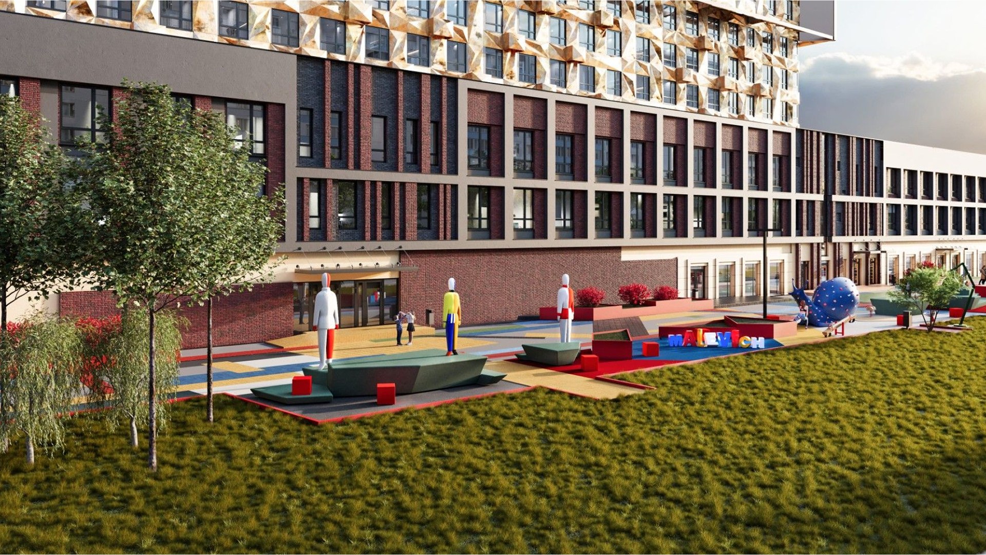 «Дом MALEVICH» — это концептуальный жилой комплекс бизнес-класса, воплощающий идею мультифункционального дома будущего. Здесь границы между личным пространством и возможностями городской инфраструктуры стираются, создавая единое архитектурное и социальное пространство. Каждый элемент — от планировок до общественных зон — разработан с участием архитекторов, урбанистов и художников, вдохновлённых авангардом Малевича.