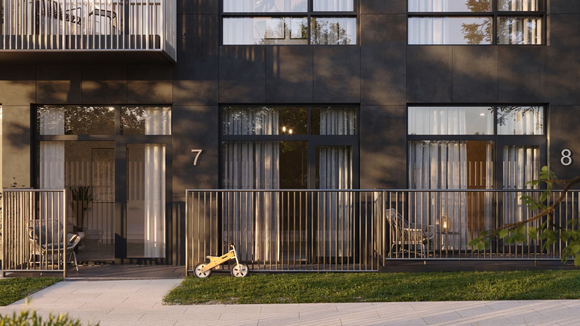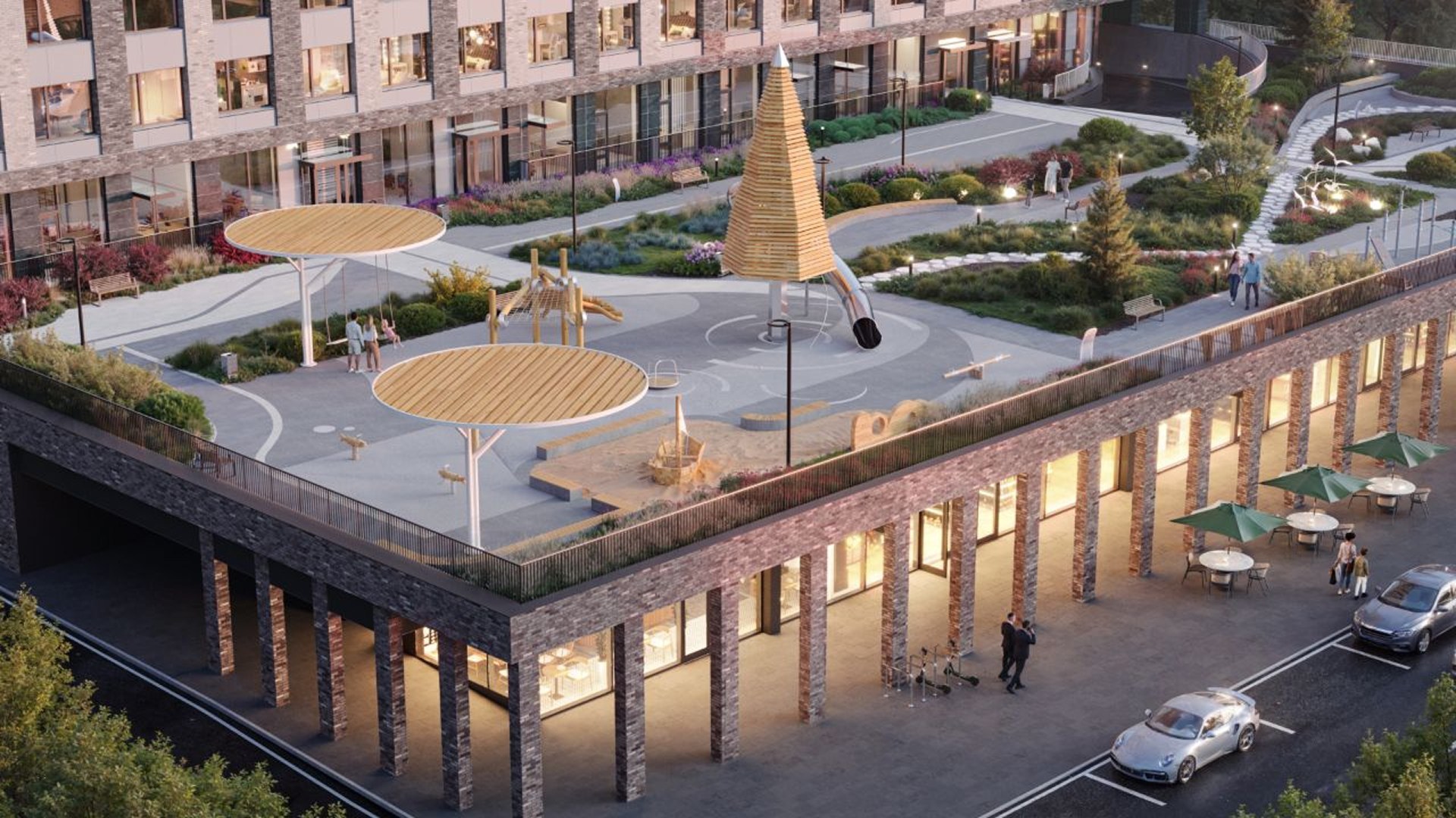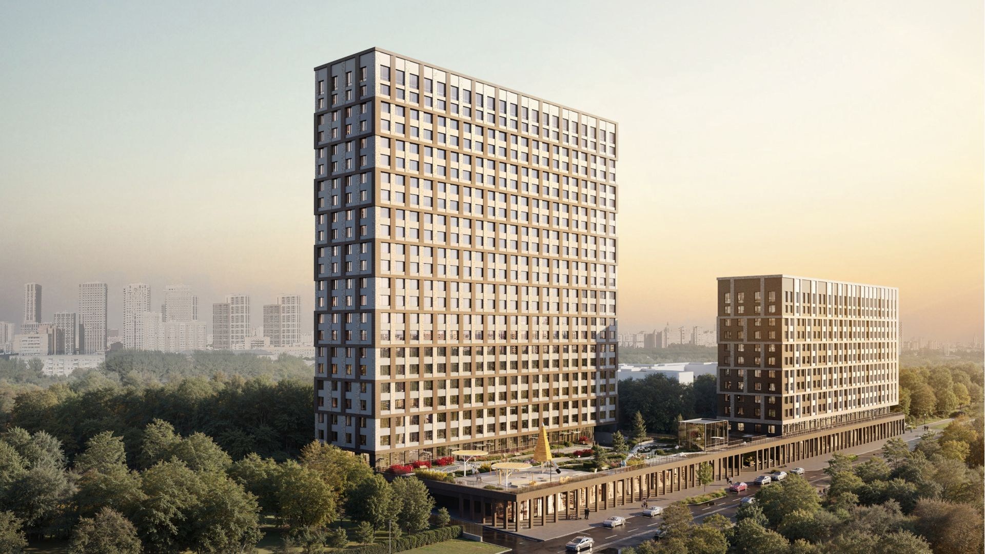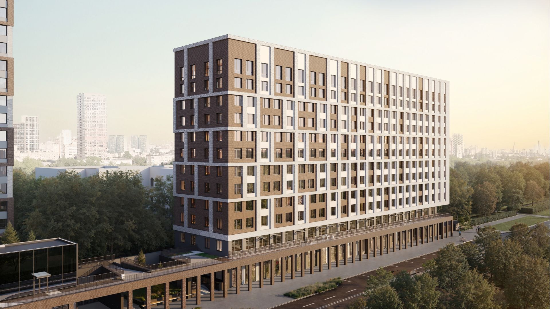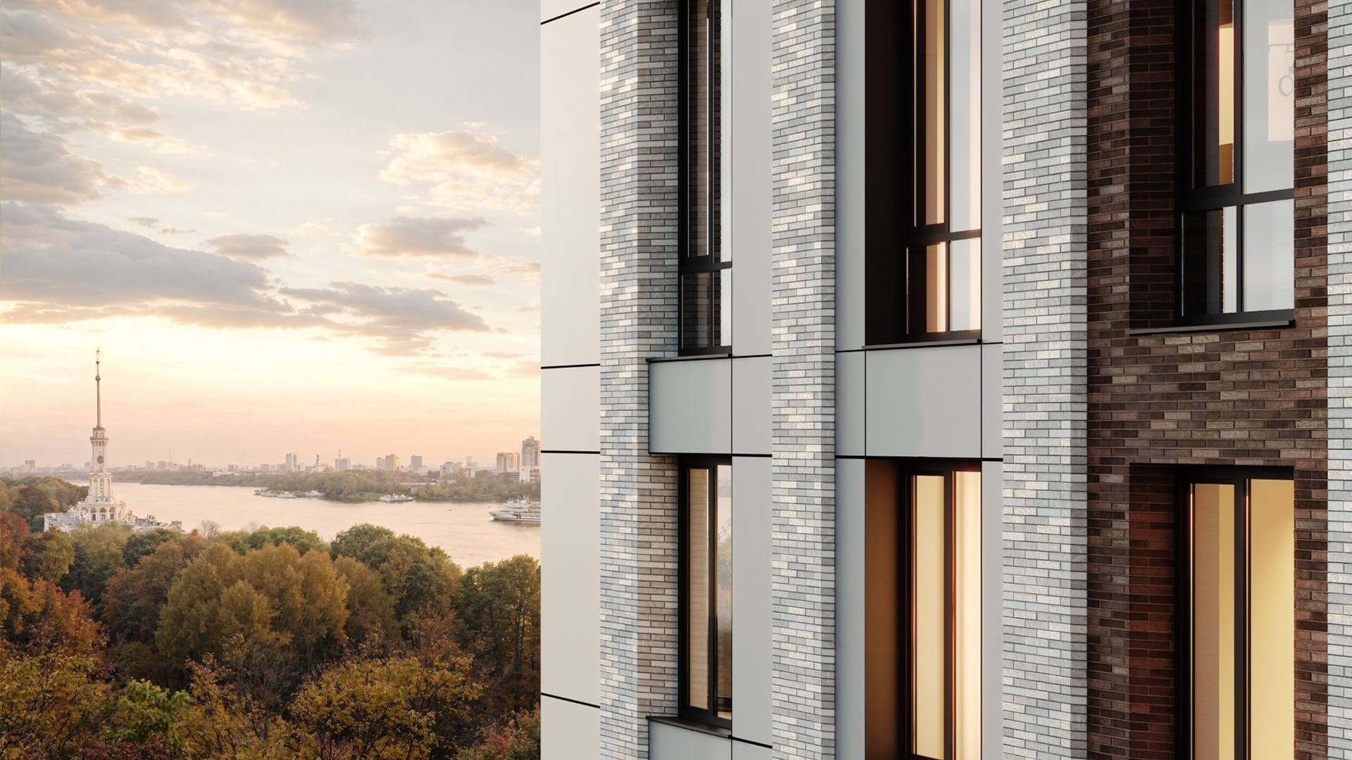 Проект занимает территорию 14 га у Северного речного вокзала и граничит с парком площадью 49 га. Жилые корпуса разной этажности формируют единый архитектурный ансамбль с приватными дворами и прямым выходом на набережную длиной 3,2 км с ресторанами, бутиками и зонами отдыха у воды.