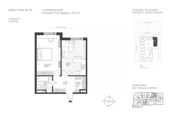 1-комнатная, 48.3 м², №110323