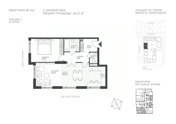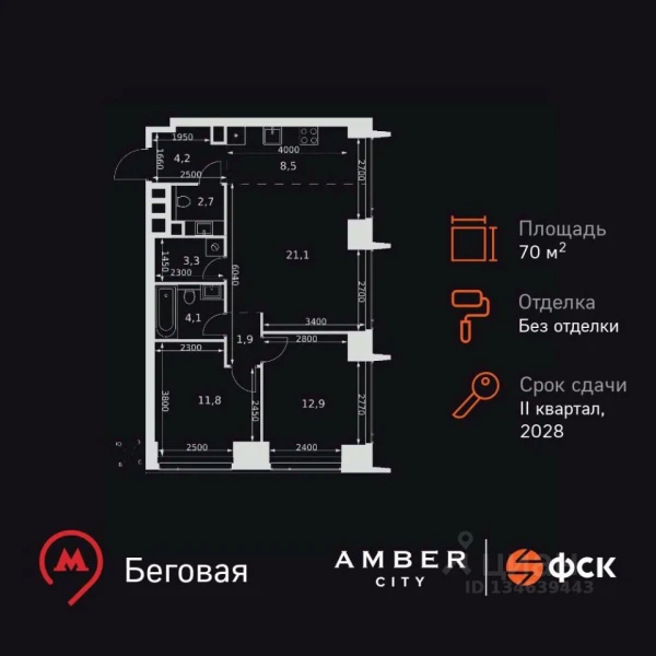 Однокомнатная квартира ЖК «Монблан», 73.2 м², №2633