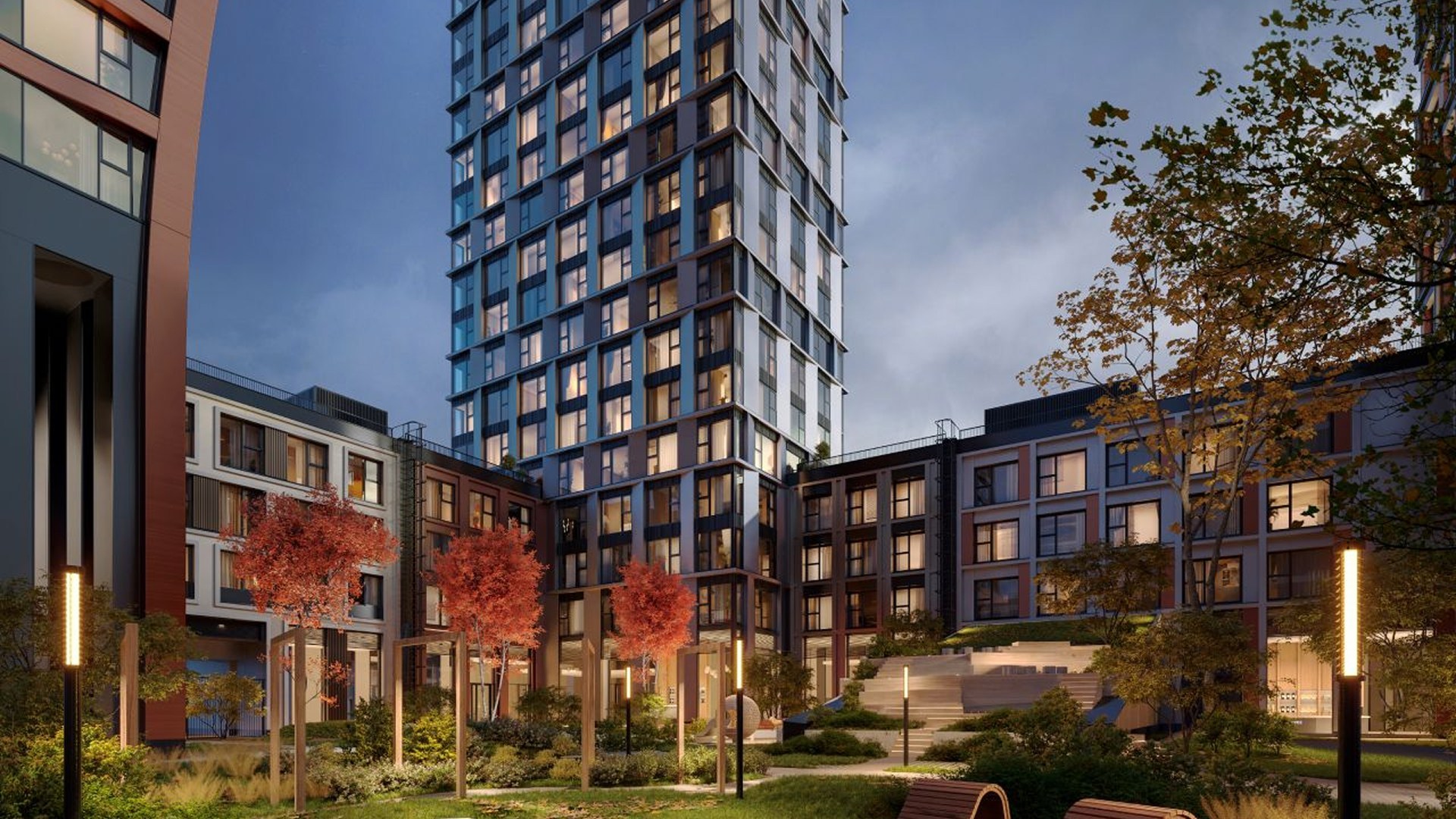 CITYZEN создаётся по концепции урбан-блоков — кварталов с закрытыми дворами и активными фасадами. Каждое здание отличается архитектурой и отделкой, предусмотрены панорамные окна, эркеры, балконы и террасы. Входные группы включают лобби-гостиную, ресепшн, колясочные, лапомойки и постаматы. На дворовой территории обустроены зоны отдыха, воркаута, площадки для детей и собак. Пространство безопасно — работает система видеонаблюдения.