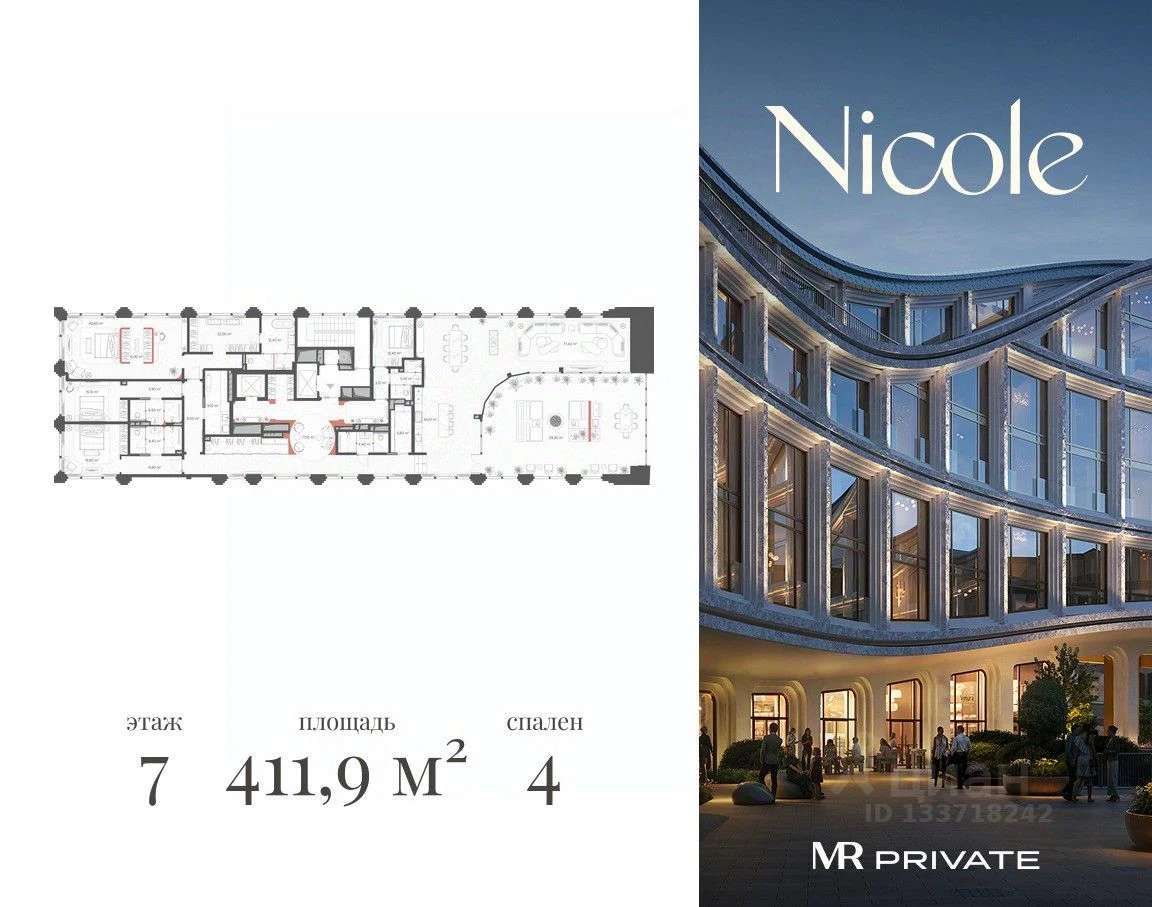 Продается 4-комнатная квартира в ЖК Nicole (Николь) - по цене 2 883 300 000 ₽ от застройщика MR Group. Находится по адресу: Москва, Никольская улица, 8/1с1 возле метро Площадь Революции в районе Тверской. Общая площадь квартиры - 411.9 м². Этаж 7 из 7.