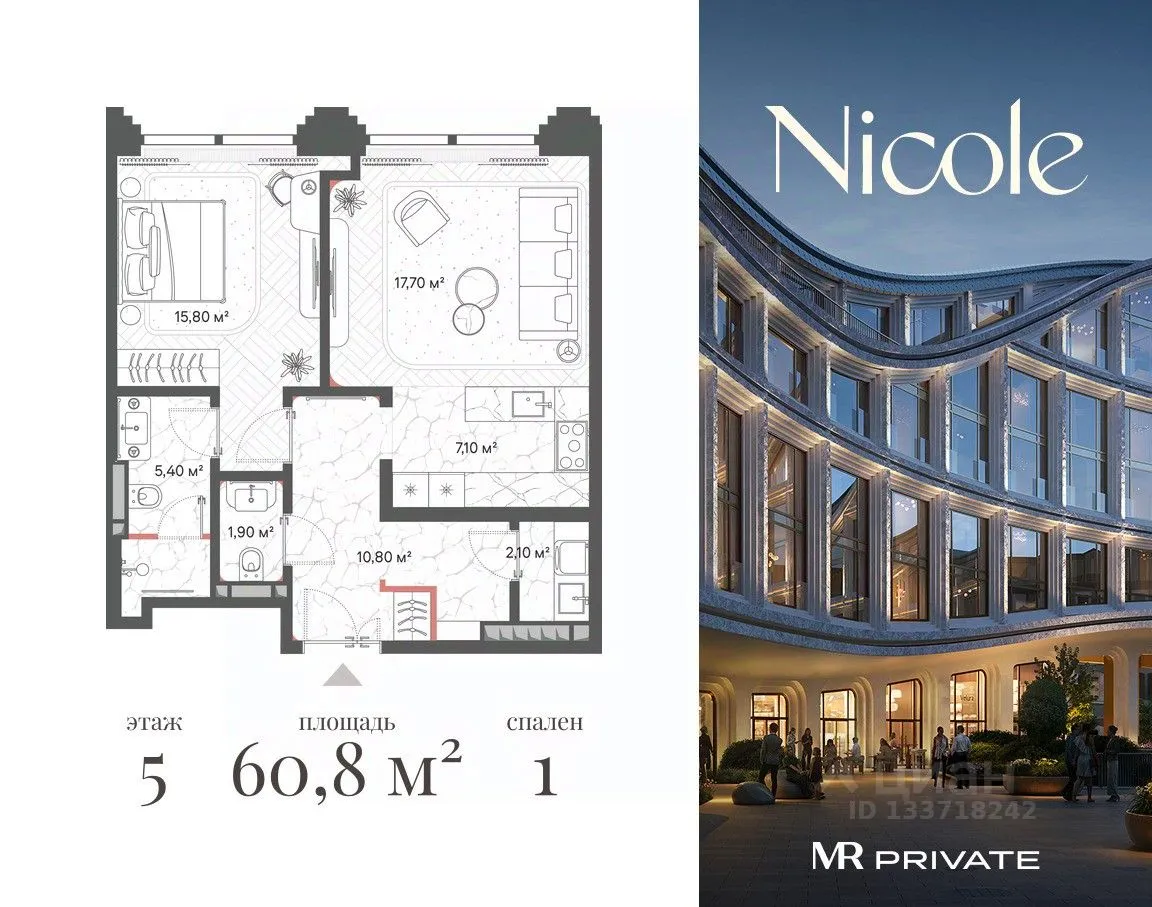 Продается 1-комнатная квартира в ЖК Nicole (Николь) - по цене 231 040 000 ₽ от застройщика MR Group. Находится по адресу: Москва, Никольская улица, 8/1с1 возле метро Площадь Революции в районе Тверской. Общая площадь квартиры - 60.8 м². Этаж 5 из 7.