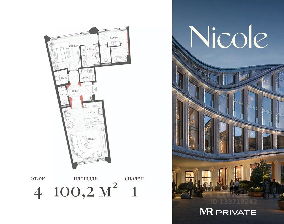 Продается 1-комнатная квартира в ЖК Nicole (Николь) - по цене 280 560 000 ₽ от застройщика MR Group. Находится по адресу: Москва, Никольская улица, 8/1с1 возле метро Площадь Революции в районе Тверской. Общая площадь квартиры - 100.2 м². Этаж 4 из 7.