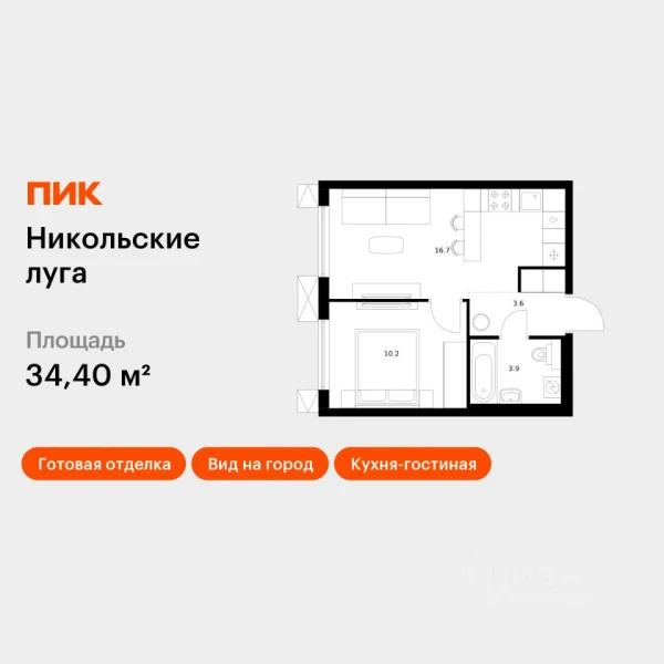 Двухкомнатная квартира ЖК «Никольские луга» · 47.9 м²