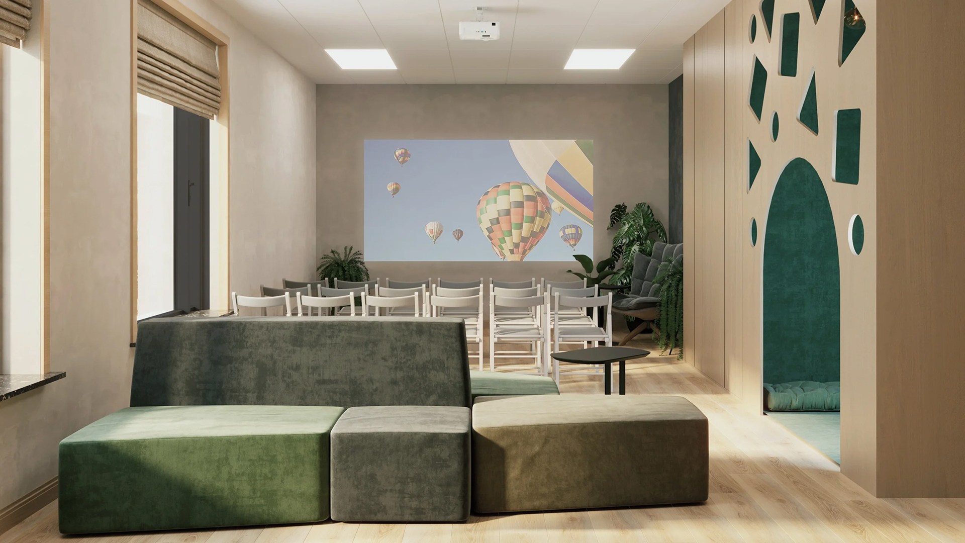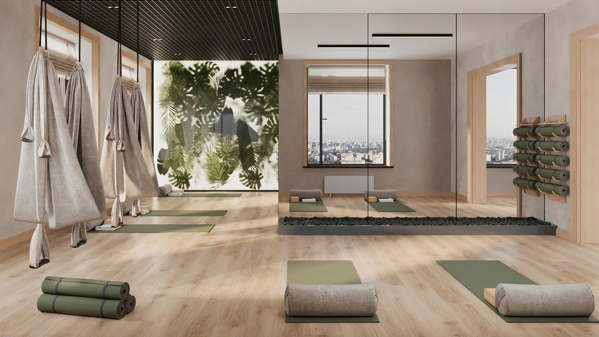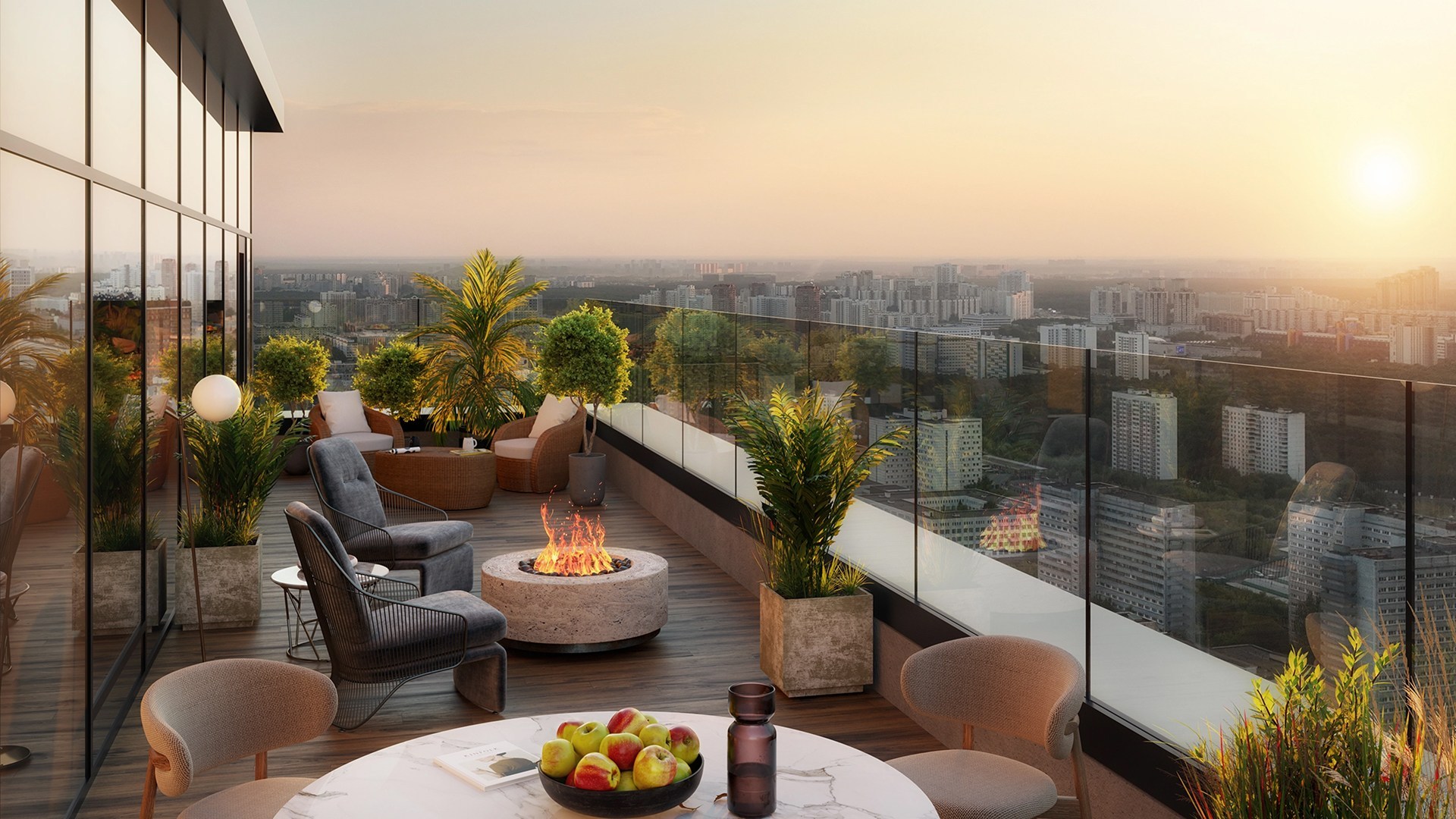 Внутренний двор закрыт для машин и благоустроен по авторскому проекту: здесь детские и спортивные площадки, зоны отдыха, Wi-Fi и зарядки для гаджетов. В лобби — лаунж с камином и 10-метровыми потолками. На 32 и 43 этажах откроются коворкинги, тренажёрный зал, мини-кинотеатр, детская комната. Подземный паркинг рассчитан на 456 мест и оборудован автомойкой, зарядками для электромобилей, системами распознавания номеров.