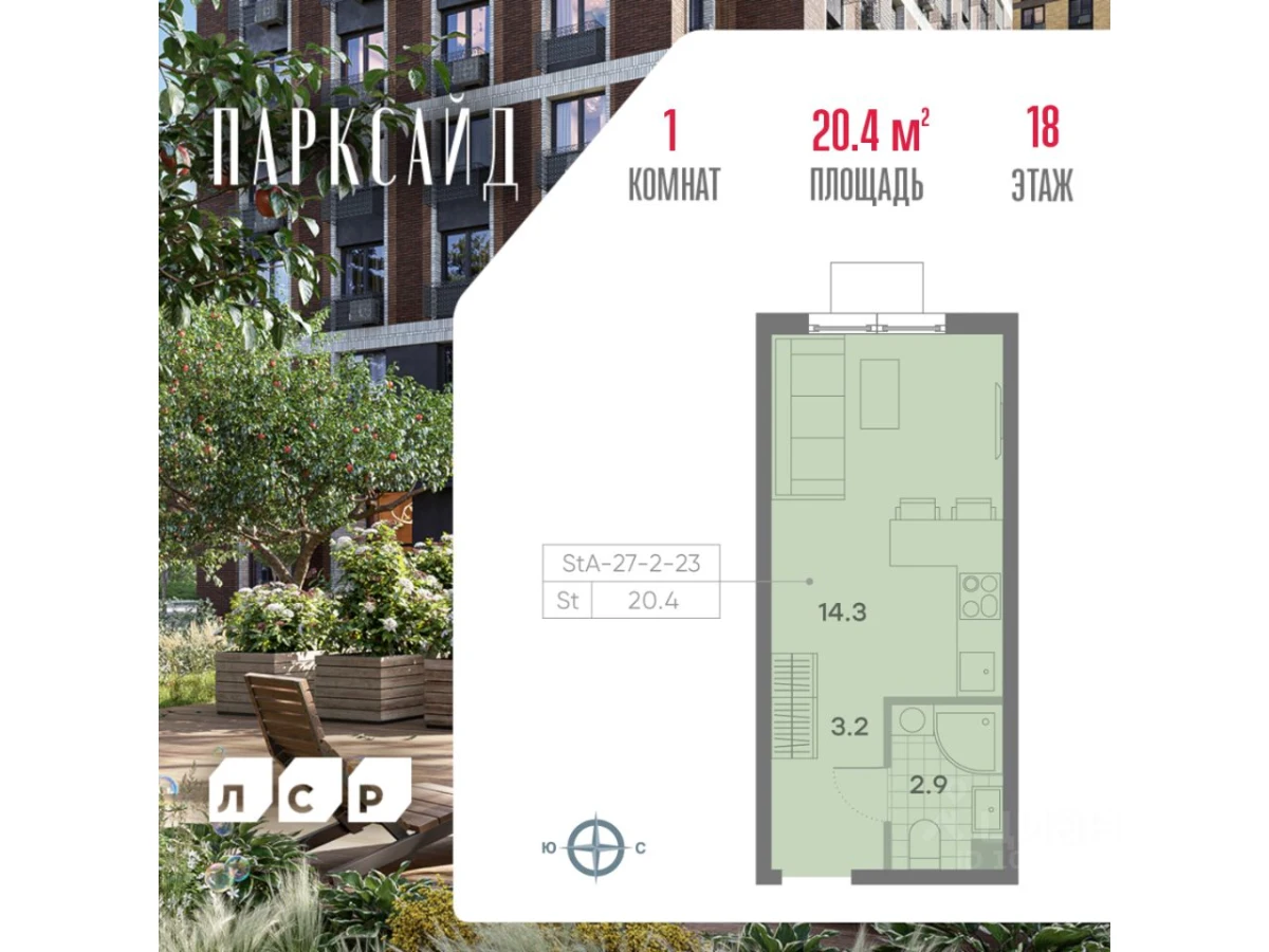 Продается студия квартира в ЖК Parkside (Парксайд) - по цене 9 130 672 ₽ от застройщика ЛСР. Находится по адресу: Москва, ул. Красного Маяка возле метро Пражская в районе Чертаново Центральное. Общая площадь квартиры - 20.4 м². Этаж 18 из 23.