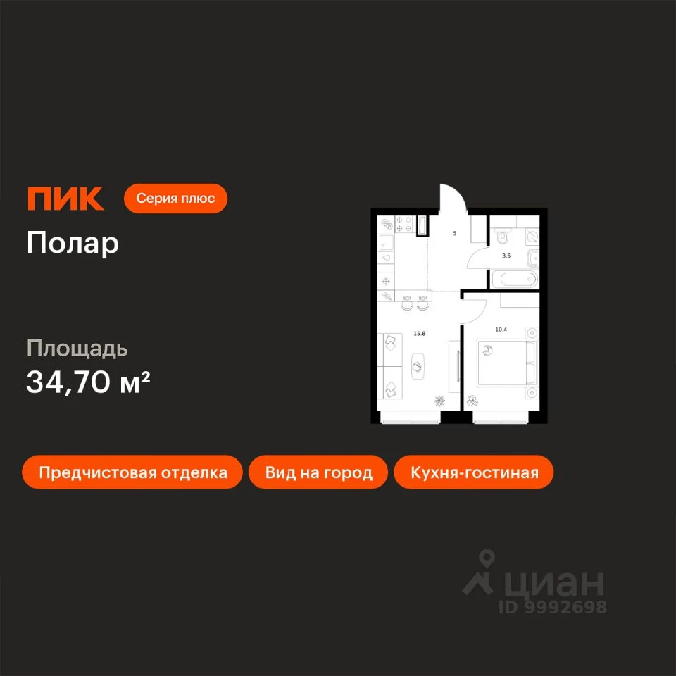 1-комнатная, 34.7 м², №116142