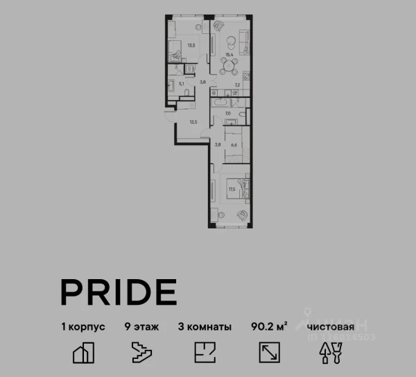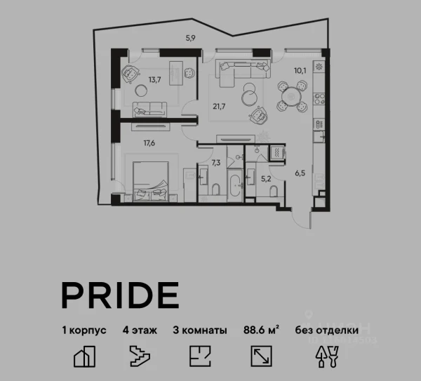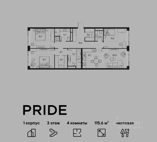 Четырехкомнатная квартира ЖК «PRIDE (Прайд)» · 99.5 м²