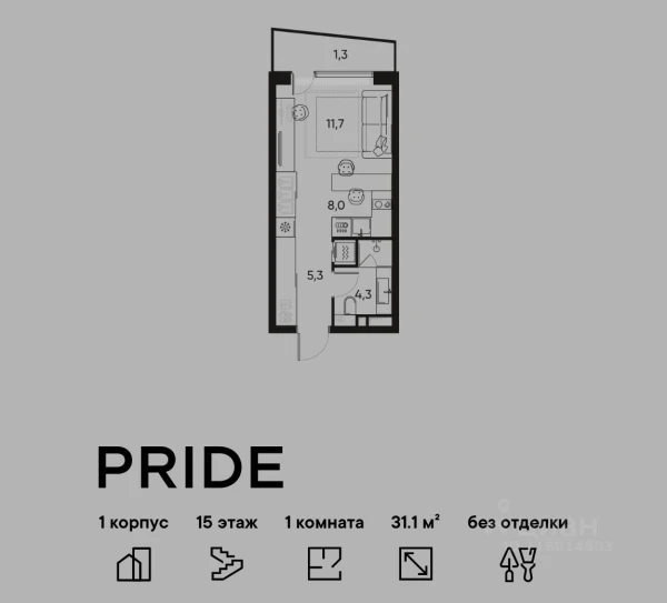 Однокомнатная квартира ЖК «PRIDE (Прайд)» · 31.4 м²