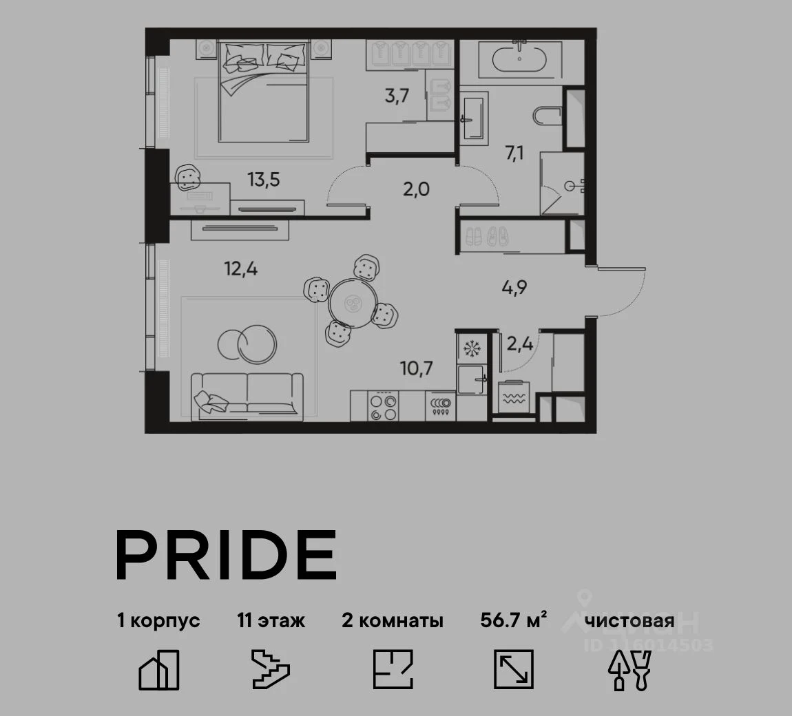 Продается 2-комнатная квартира в ЖК PRIDE (Прайд) - по цене 48 710 970 ₽ от застройщика PIONEER. Находится по адресу: Москва, Полковая улица, вл. 1 возле метро Савёловская в районе Марьина роща. Общая площадь квартиры - 56.7 м². Этаж 11 из 22.
