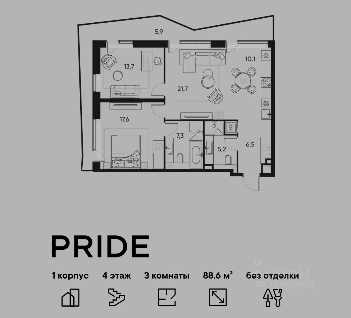 Продается 3-комнатная квартира в ЖК PRIDE (Прайд) - по цене 44 280 015 ₽ от застройщика PIONEER. Находится по адресу: Москва, Полковая улица, вл. 1 возле метро Савёловская в районе Марьина роща. Общая площадь квартиры - 88.6 м². Этаж 4 из 22.