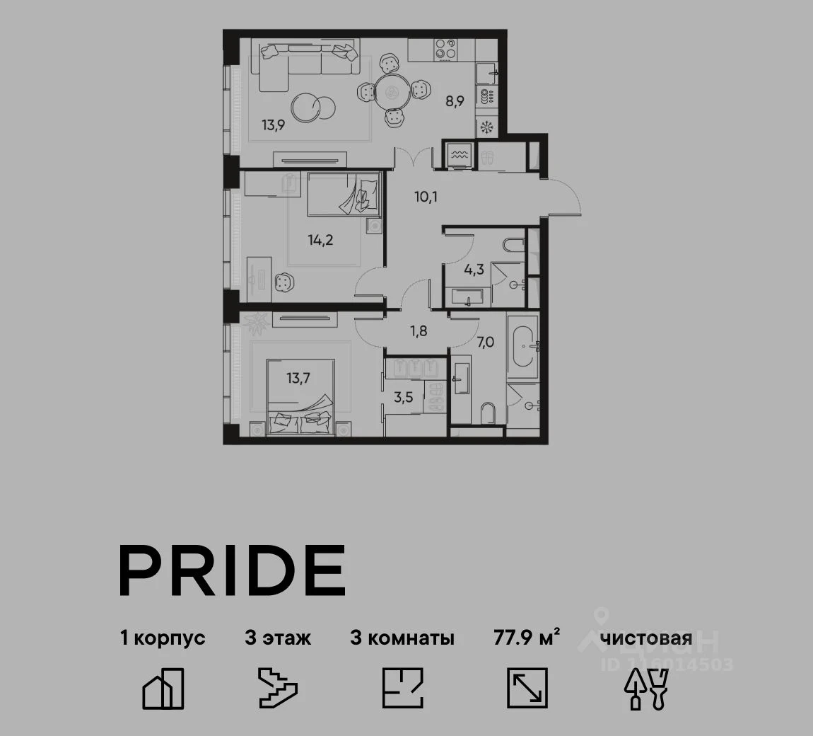Продается 3-комнатная квартира в ЖК PRIDE (Прайд) - по цене 47 705 960 ₽ от застройщика PIONEER. Находится по адресу: Москва, Полковая улица, вл. 1 возле метро Савёловская в районе Марьина роща. Общая площадь квартиры - 77.9 м². Этаж 3 из 9.