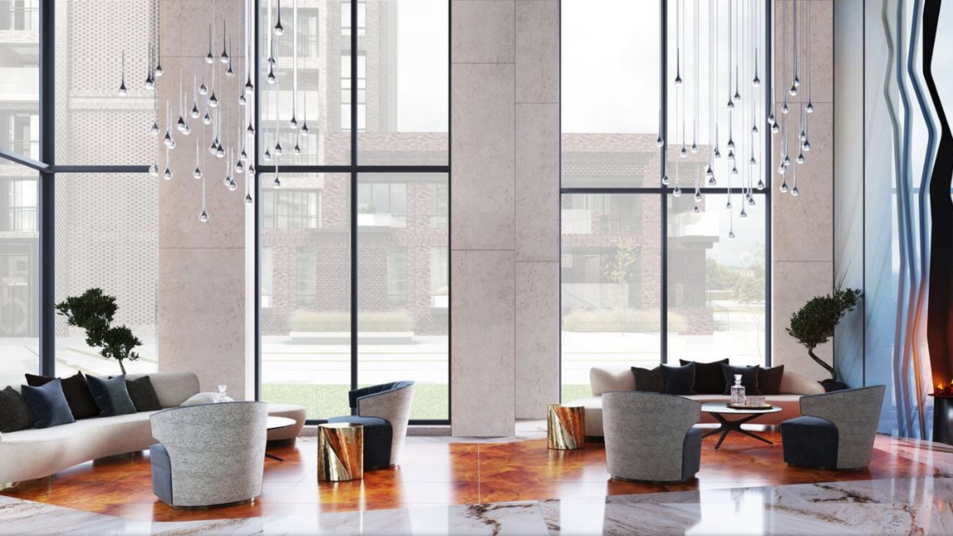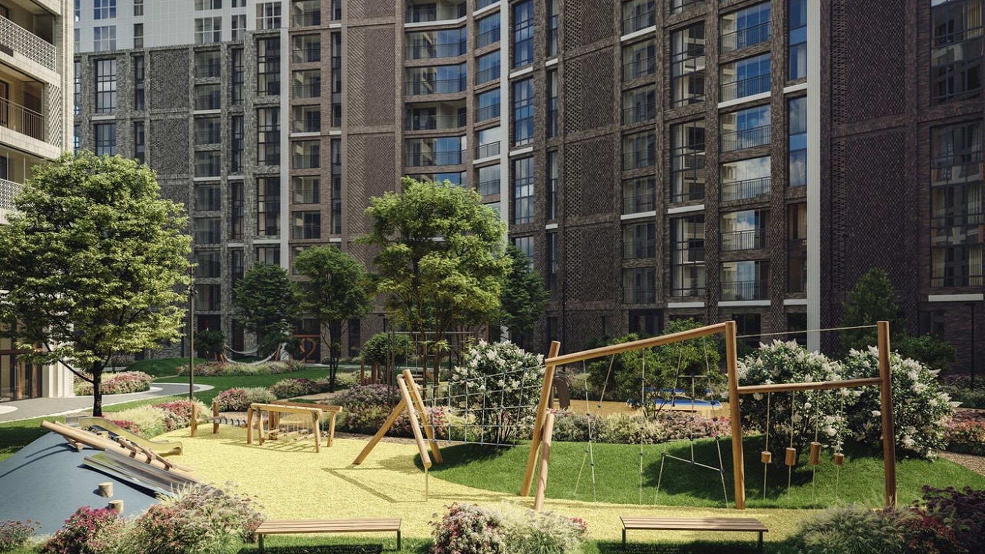В проекте представлены квартиры от 1 до 4 комнат с потолками до 3,42 м, угловыми окнами, мастер-спальнями, гардеробными, постирочными и кухнями-гостиными. Есть пентхаусы с террасами и каминами, таунхаусы с отдельными входами и лоты с окнами в ванных комнатах. Квартиры передаются с отделкой в нейтральной палитре, установлена система «умный дом».