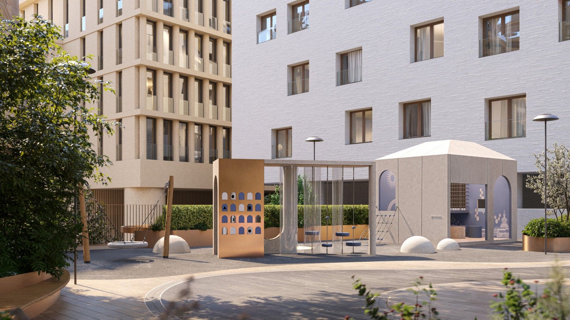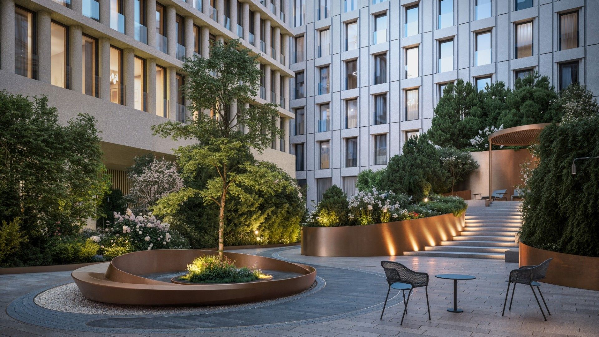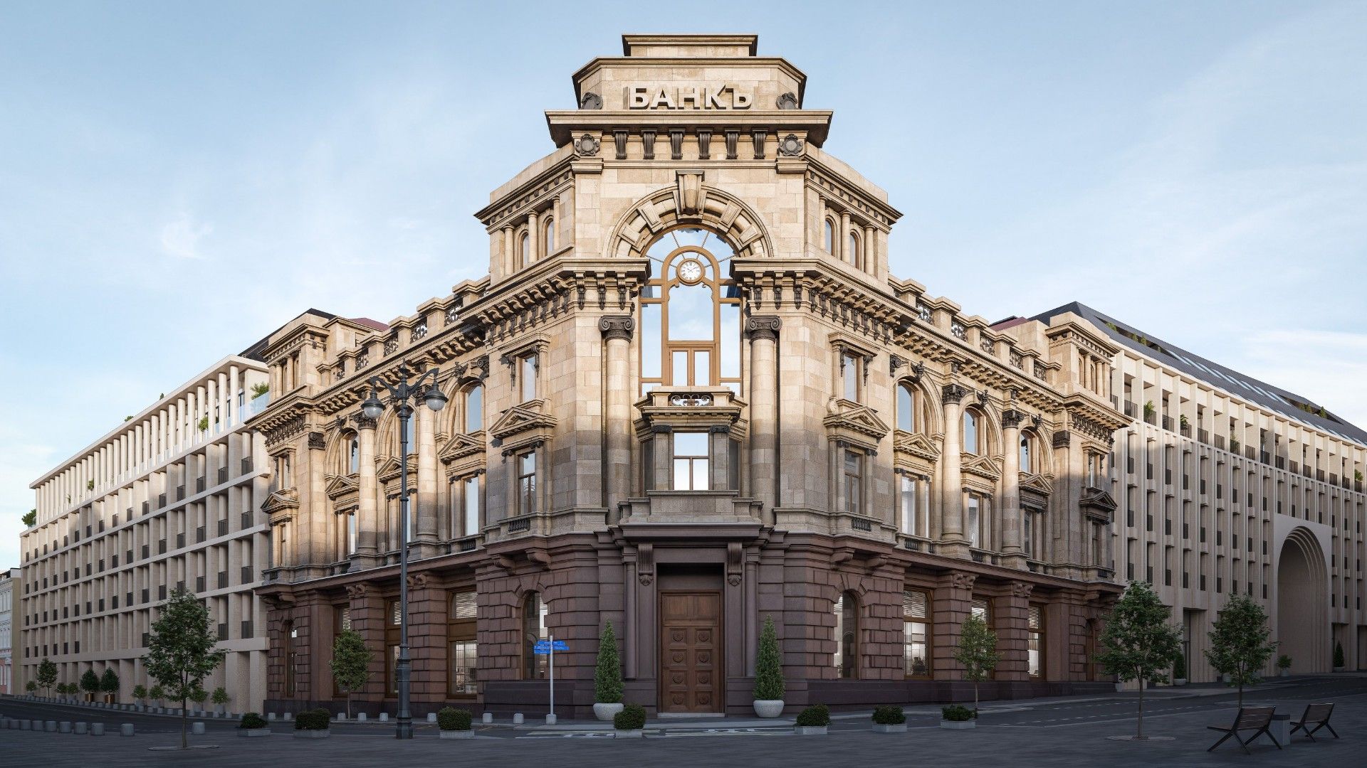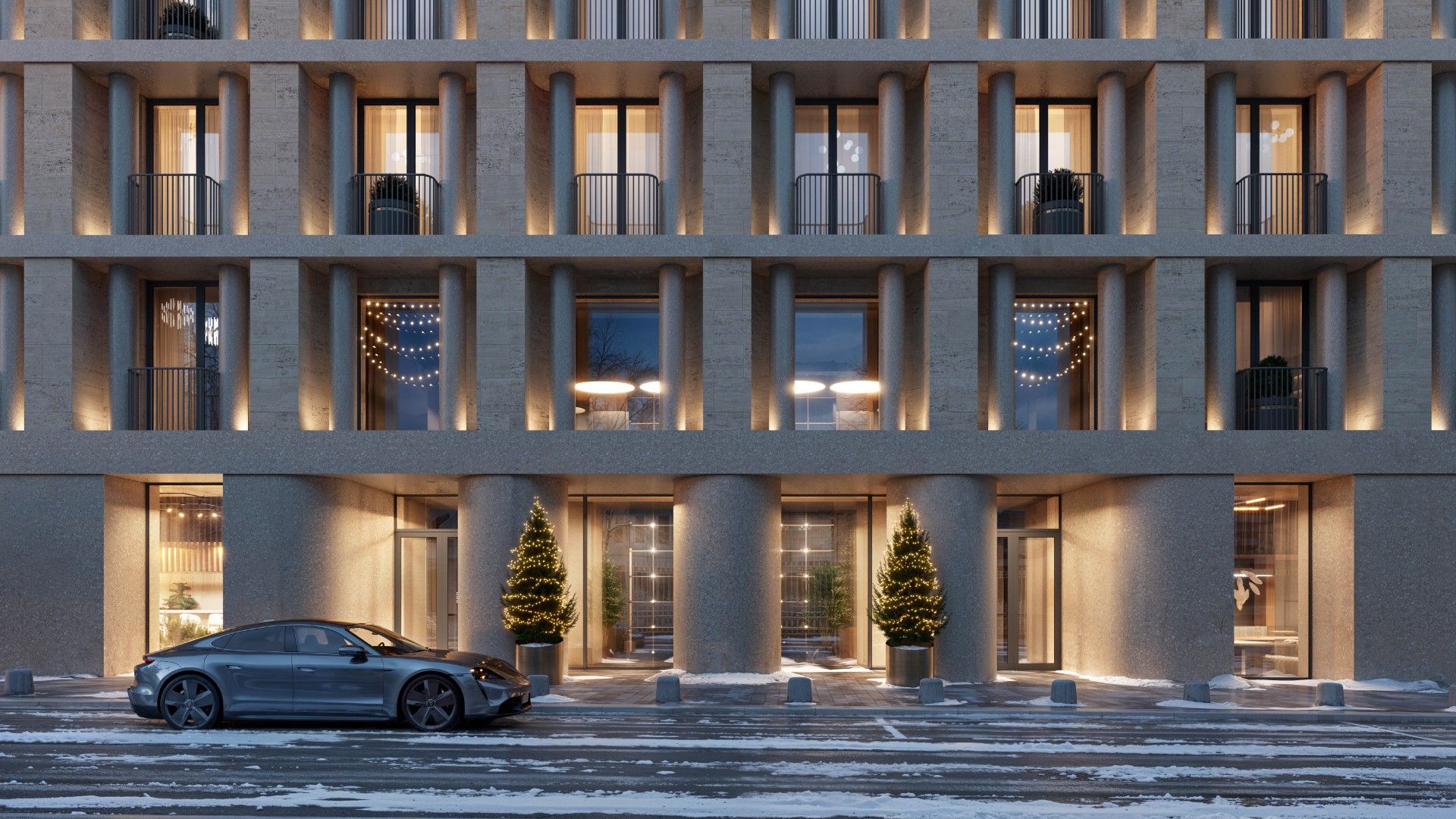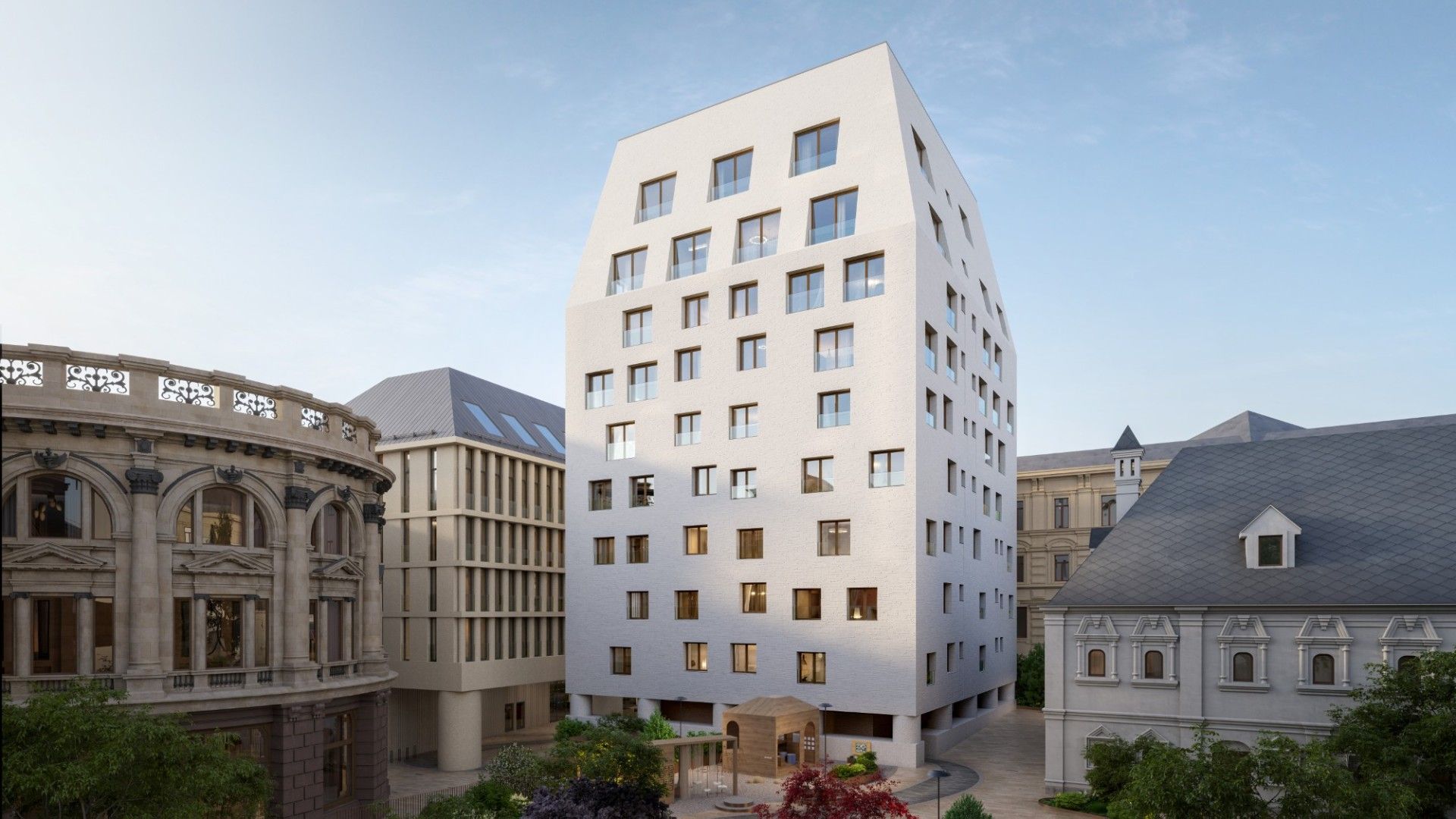 Здание выполнено в эстетике современного городского особняка: выдержанные линии, благородные материалы, продуманные фасады, гармонирующие с исторической средой. Дом выглядит дорого, но сдержанно — в духе настоящей европейской респектабельности.