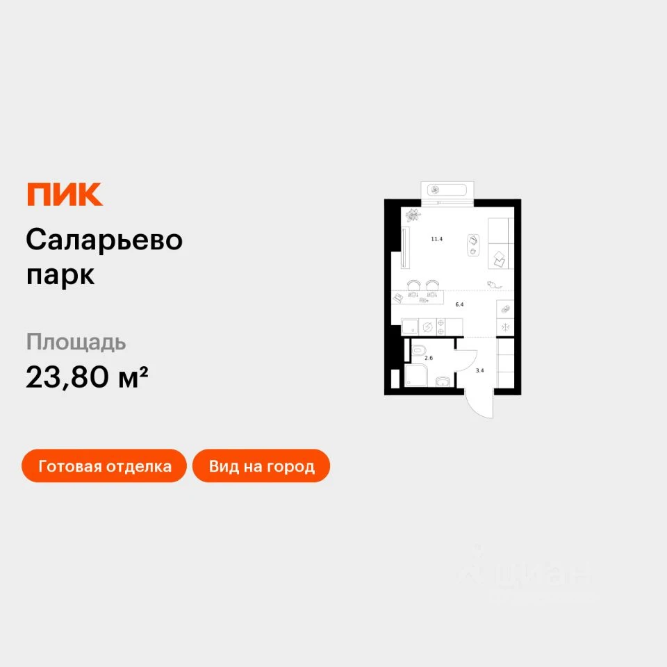 Продается студия квартира в ЖК Саларьево парк - по цене 10 702 860 ₽ от застройщика ПИК. Находится по адресу: Москва, Московский, Киевское шоссе возле метро Филатов луг в районе Сосенское. Общая площадь квартиры - 23.8 м². Этаж 15 из 16.