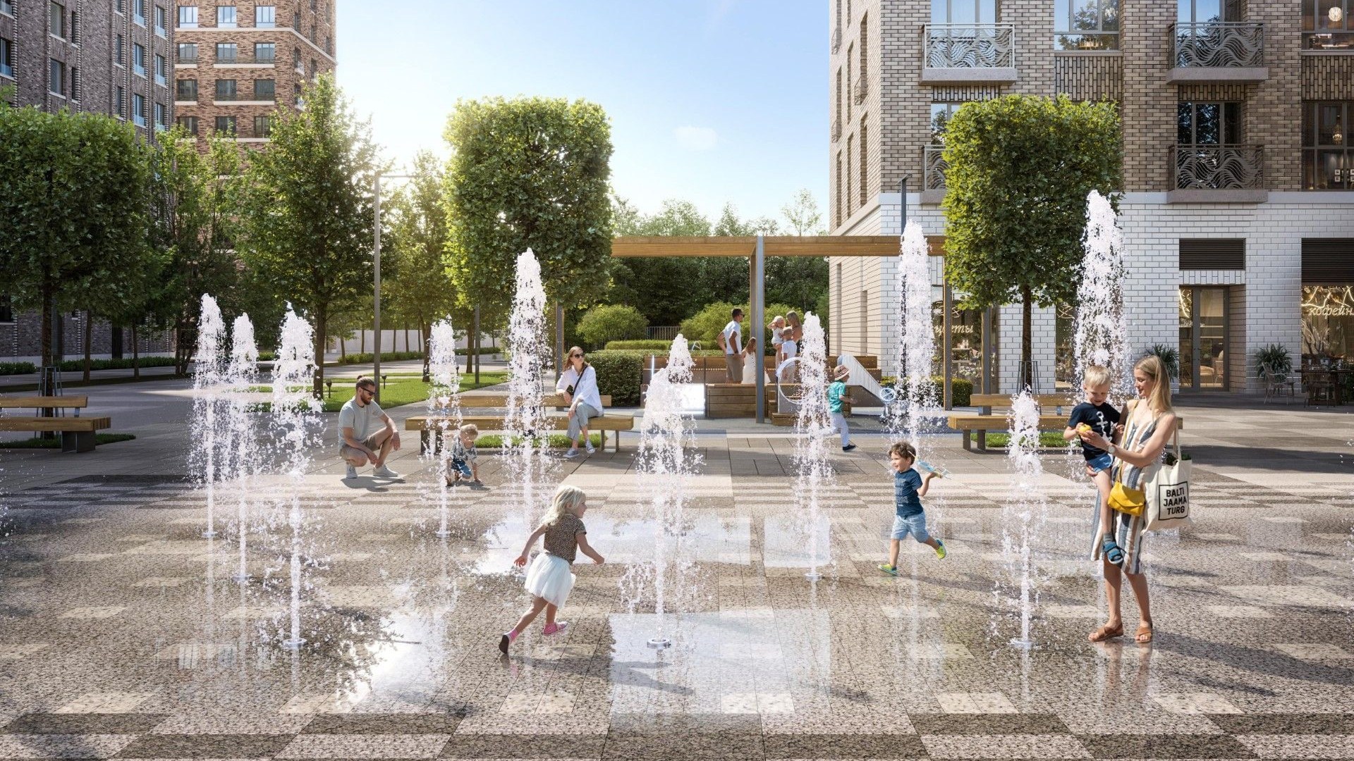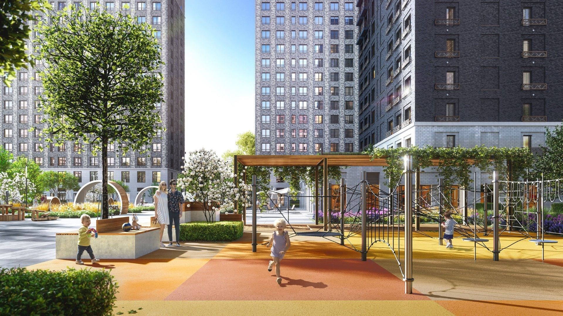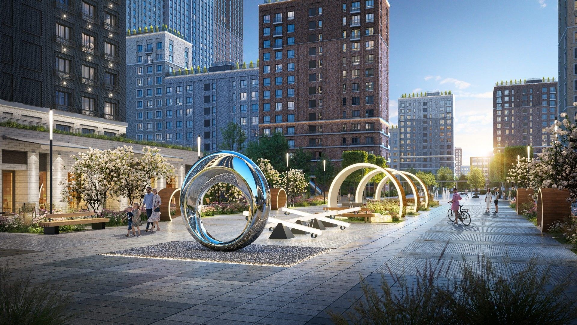 На территории создано автономное жилое пространство с собственной инфраструктурой. В комплекс входят школа, детский сад, магазины, офисы и кафе. Центральным элементом стал двор-парк с зонами для спорта, отдыха и прогулок. Здесь есть площадки для детей, зоны для выгула собак, воркаут-зона, пруд с пляжем, амфитеатр и дорожки для пешеходов и велосипедистов. Территория закрыта и охраняется.