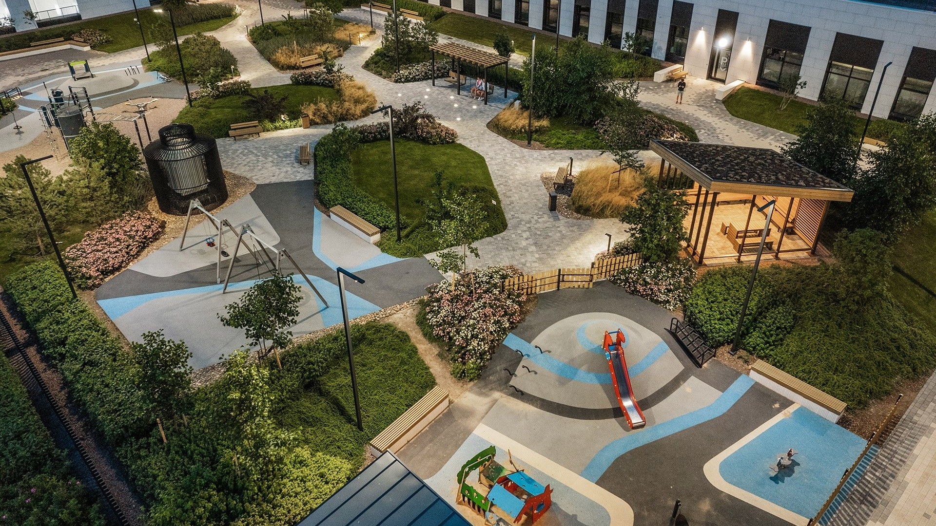 На территории появится благоустроенная набережная длиной 3,2 км, соединённая с парком речного вокзала. Здесь откроются кафе, рестораны, магазины, фитнес-центры и прогулочные маршруты. Дворы будут без машин, с приватными зонами отдыха, площадками для детей и взрослых, зелёными аллеями и ландшафтным освещением.