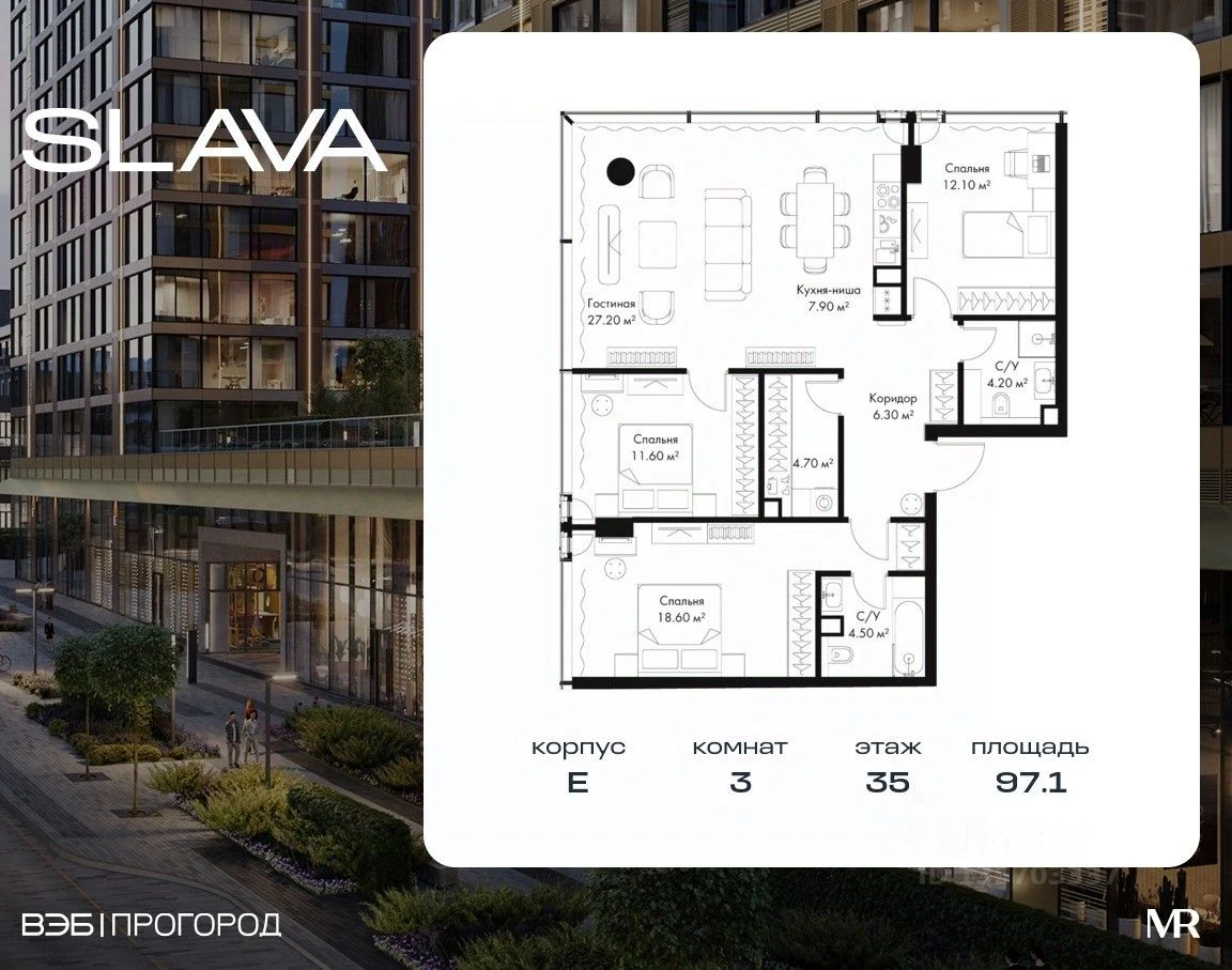 Продается 3-комнатная квартира в ЖК Slava (Слава) - по цене 91 458 102 ₽ от застройщика MR Group. Находится по адресу: Москва, Ленинградский проспект, вл8 возле метро Белорусская в районе Беговой. Общая площадь квартиры - 97.1 м². Этаж 35 из 39.